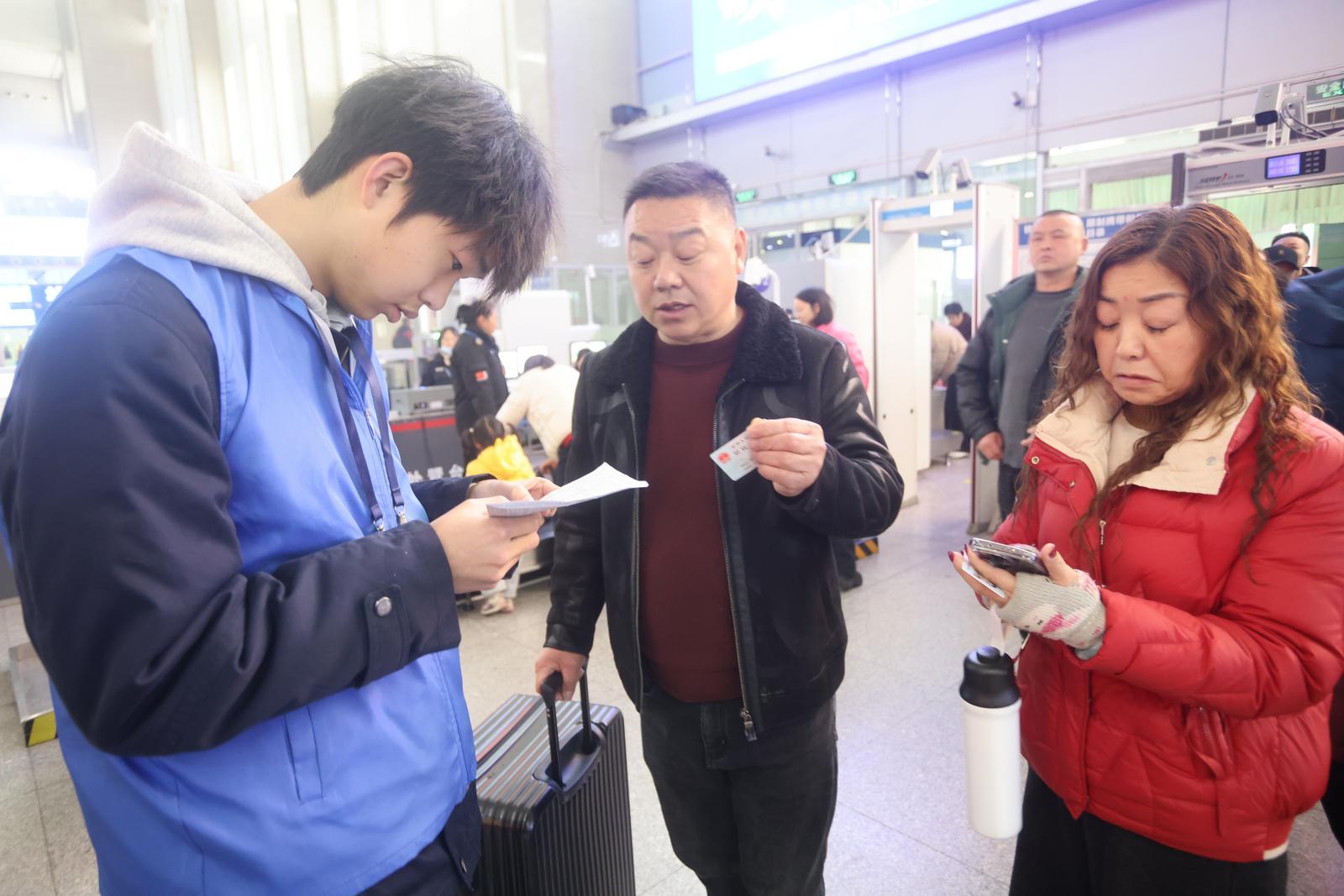 2月2日,宜昌东站,青年志愿者在为旅客服务。记者吴延陵 摄