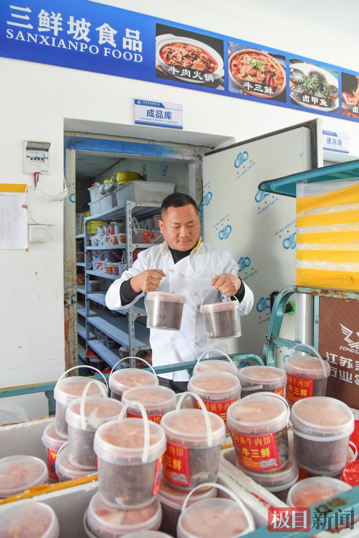 近日,极目新闻记者来到公安县斗湖堤镇孱蔬村,这里是刘杨的牛肉预加工处理车间,他将公司命名为“三鲜坡”,意为像上坡一样稳扎稳打,将主打产品牛三鲜销售出去。