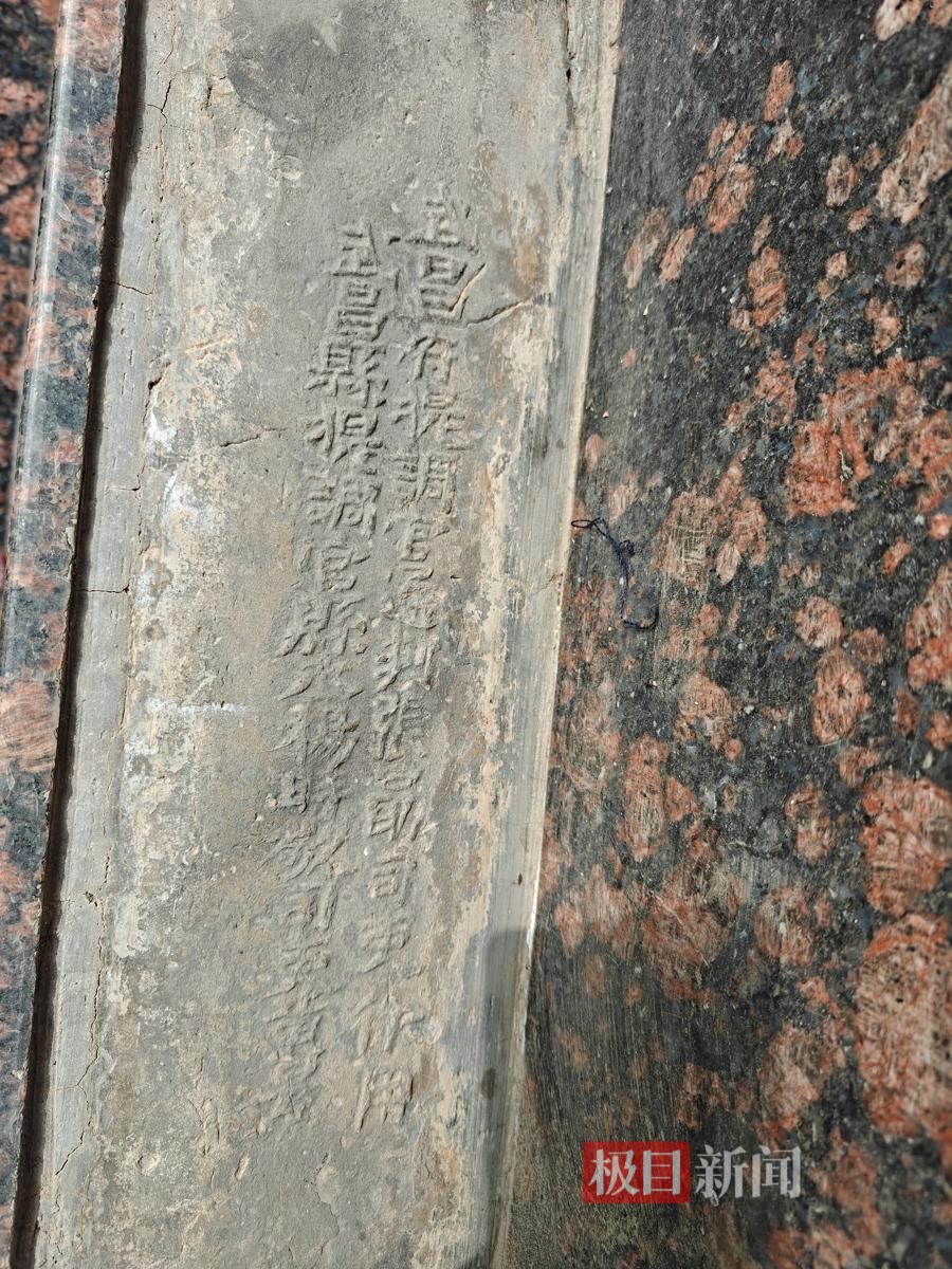 1月27日上午,极目新闻记者前往张先生的亲戚张女士的家中实地探访。推开阳台门,一块镶嵌在墙面的石块立刻映入眼帘,长宽约50厘米,细细观察,能看到上面刻着一幅图案。在阳台台阶处,2块长约20厘米、宽约10厘米的长方形石块镶嵌在台阶处,上面刻着文字,依稀可以看见“武昌府……”字样,石块表面有些许磨损,带着岁月侵蚀的斑驳痕迹。