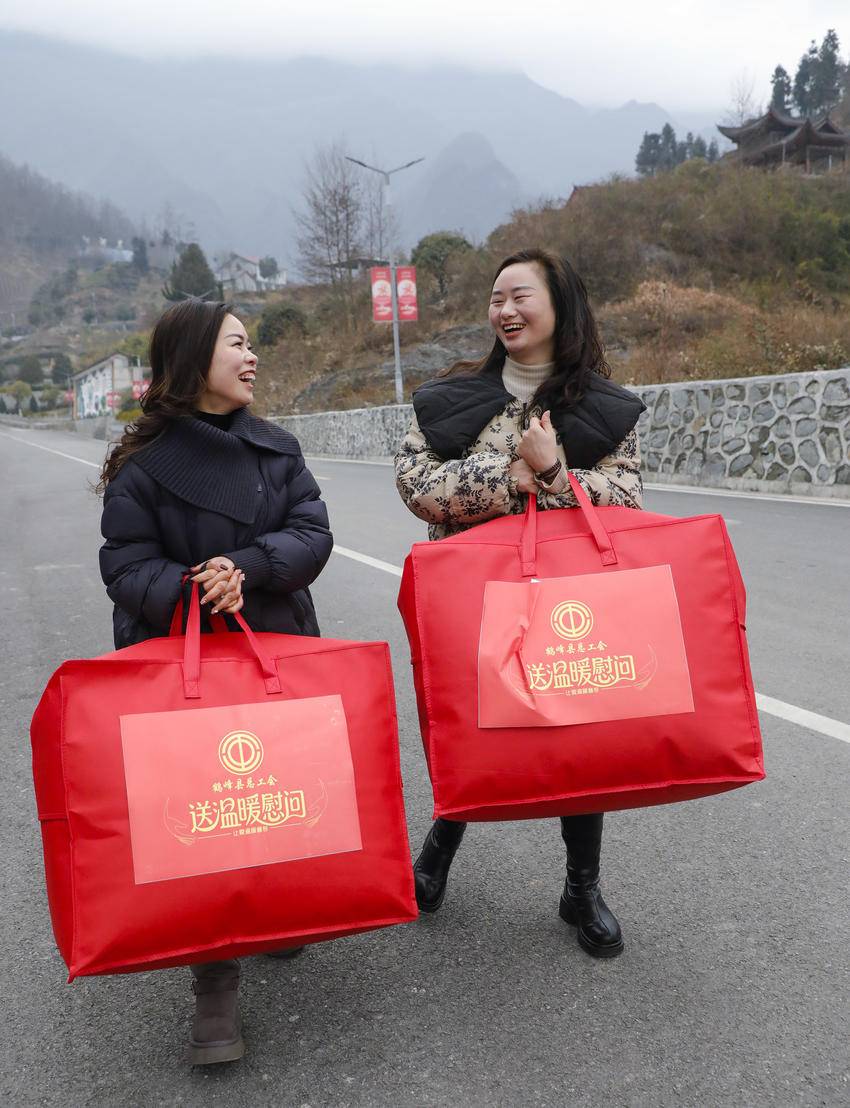 湖北日报客户端讯(通讯员覃进之、冉义娥、李素)2月4日,立春当日,鹤峰县走马客运站暖意融融。75名刚返乡的务工人员接过县总工会送来的大米、年货大礼包,脸上洋溢着笑容。