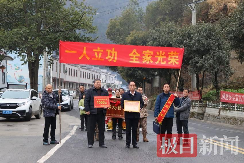 这是竹山县“冬日送荣光”行动的生动一幕。自2月1日起,由县退役军人事务局、人武部及乡镇干部组成的5支小分队,分赴11个乡镇,为15名荣立三等功的现役军人家庭送去新春的荣光。翻山越岭的脚步里,单程最远达110余公里,往返总里程超1000公里,把党和政府的关怀送进了深山农户的心坎。