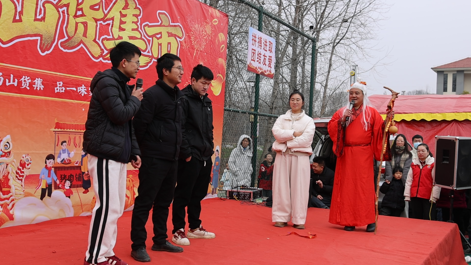青年们左手提着刚买的年货,右手慢悠悠地划过交友海报,畅谈心声,让交友的人情味,融进了集市的烟火气里。