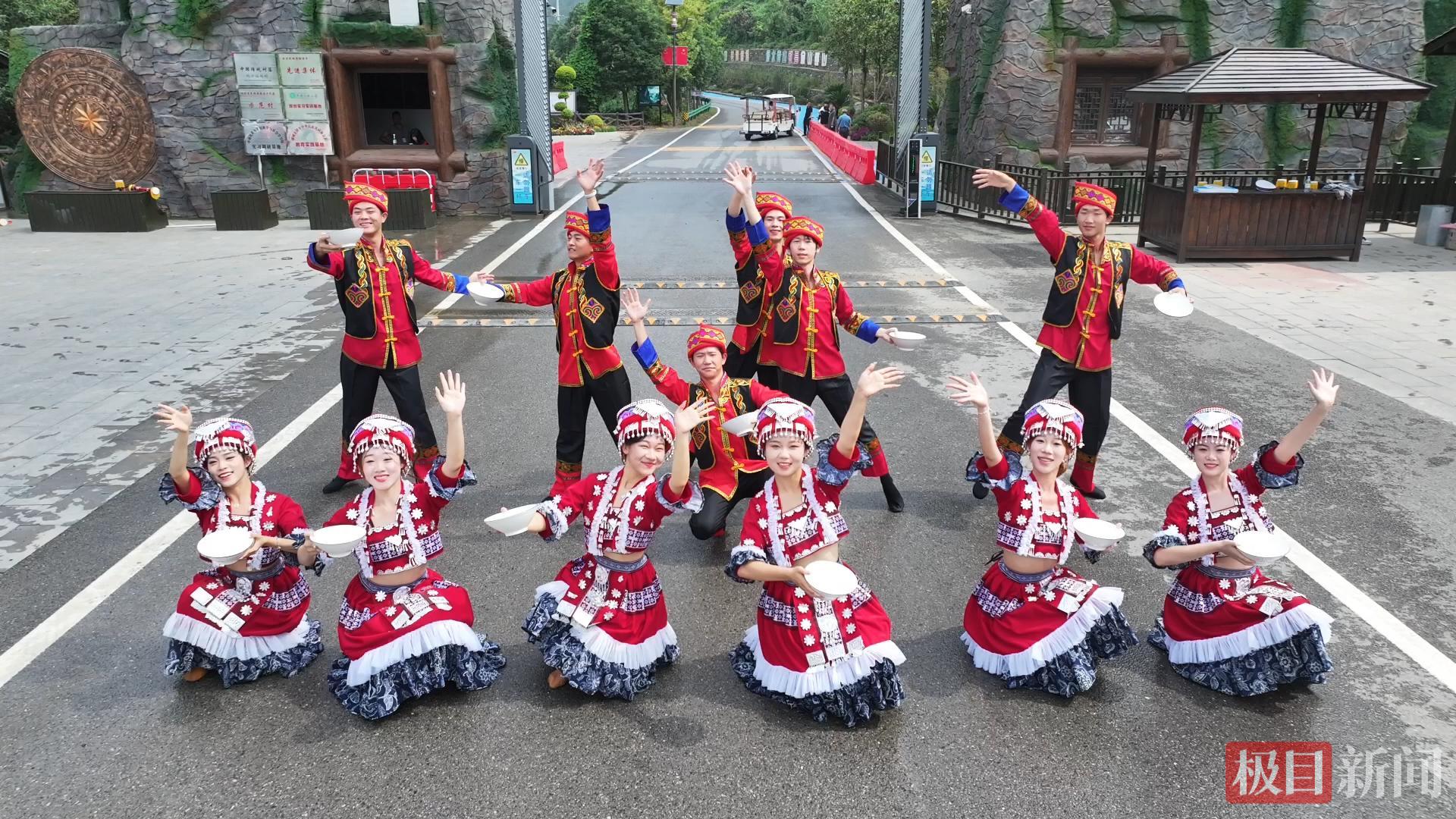 瑶家长桌宴上,黄精蒸鸡、两头乌红烧肉、桂花汤圆等特色美食飘香,村民与游客围坐举杯,烟火气十足;省级非遗拍打舞现场,阿哥阿妹带动游客共舞,嘹亮的歌声回荡山间。