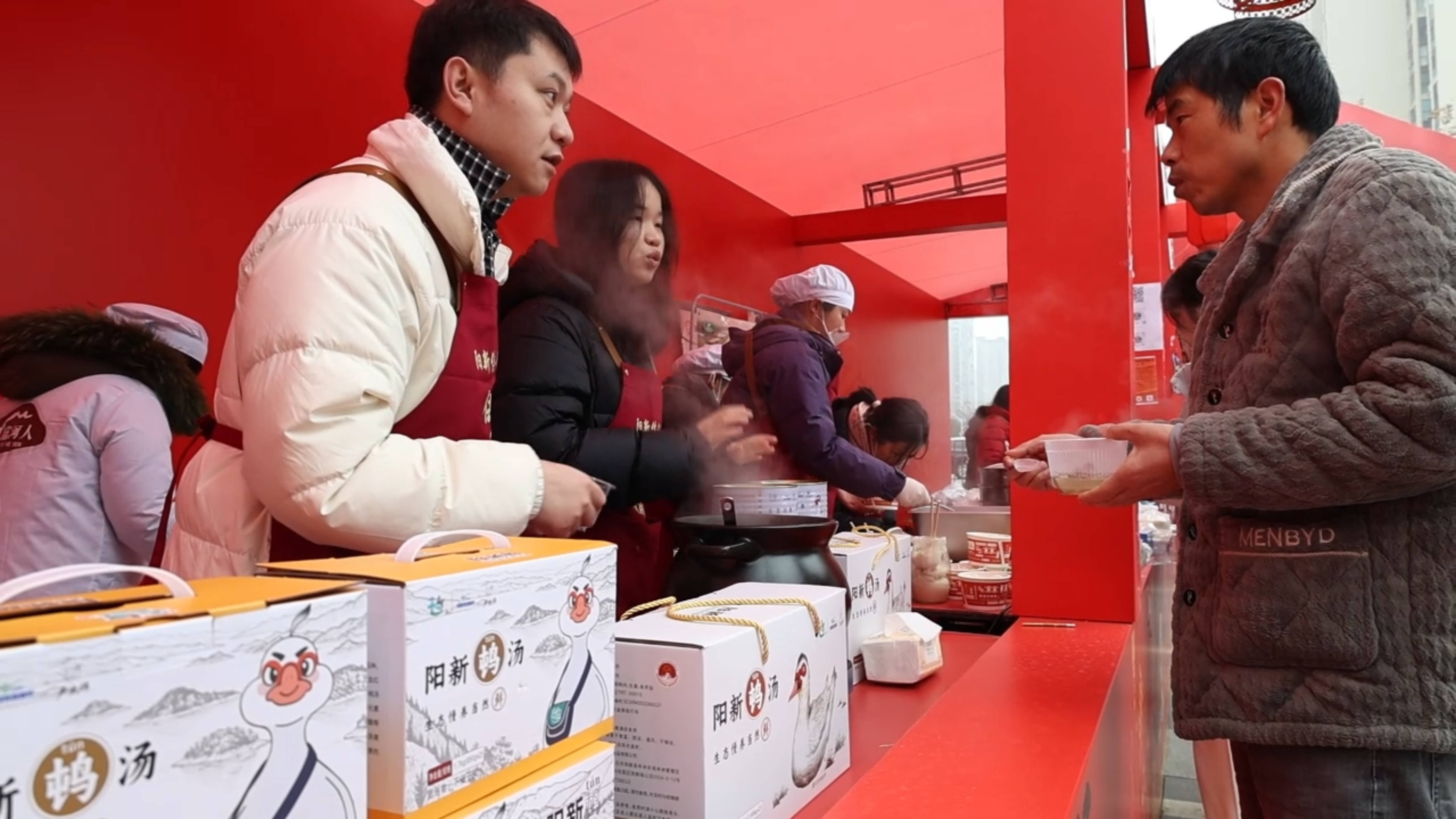 摊主 石毛:这是我们阳新的屯鸟汤,用的是生态慢养的屯鸟,炖的时候什么都不用加,原汁原味,特别鲜,大家可以尝尝看。