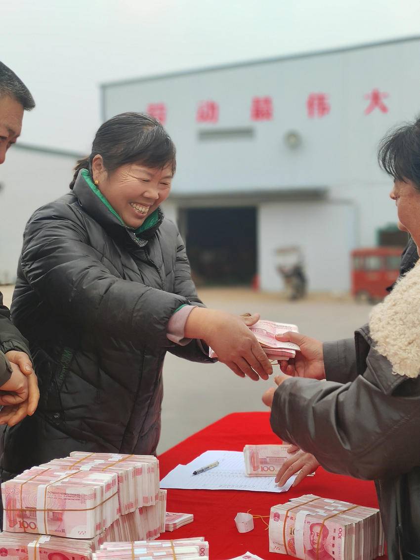 合作社社员领到分红喜笑颜开。