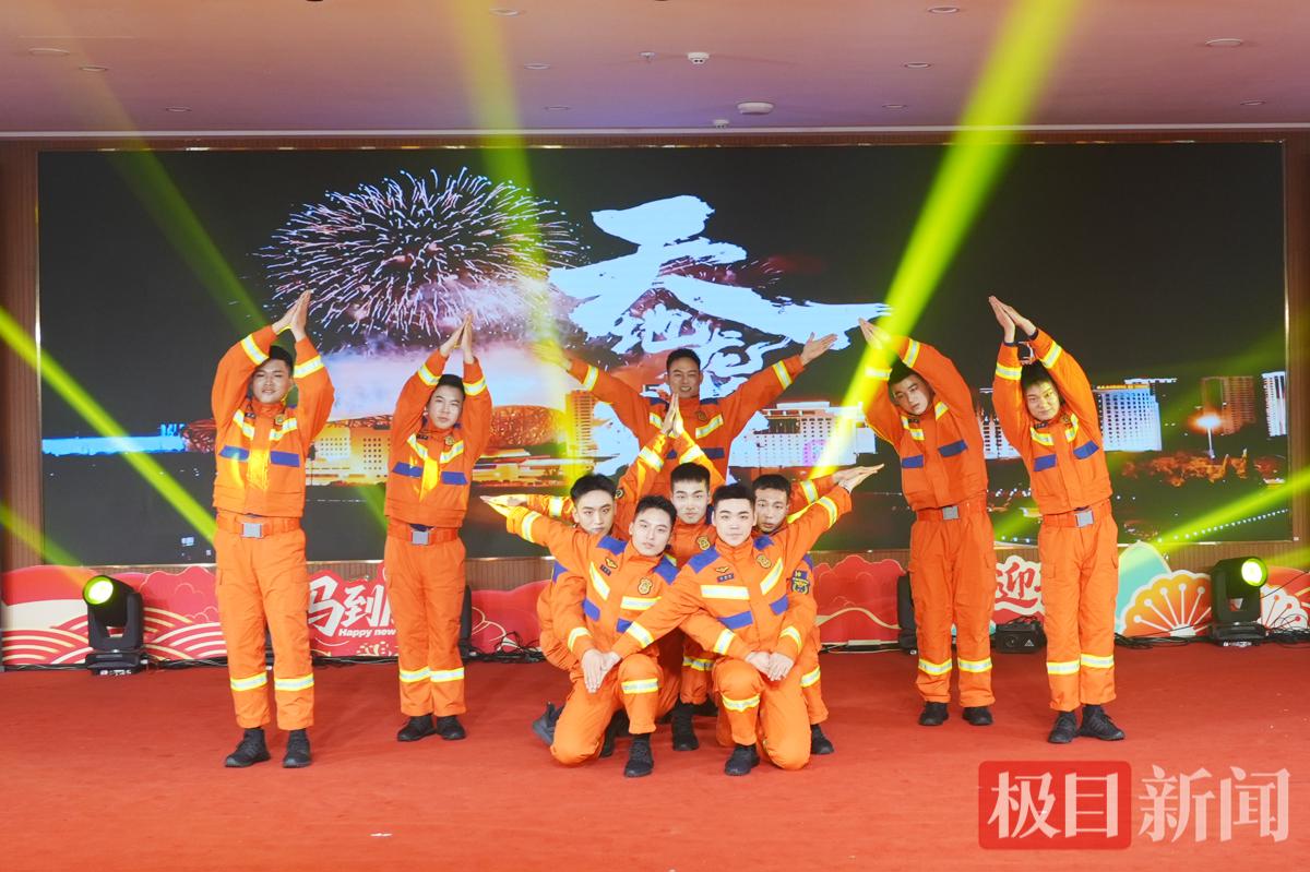 荆州市消防救援支队政治委员肖波在晚会上向全体指战员及家属致以新春祝福,荆州支队机关全体指战员及家属代表在主会场共同观看演出,各基层单位通过视频连线在分会场同步收看,共享这场文化盛宴。