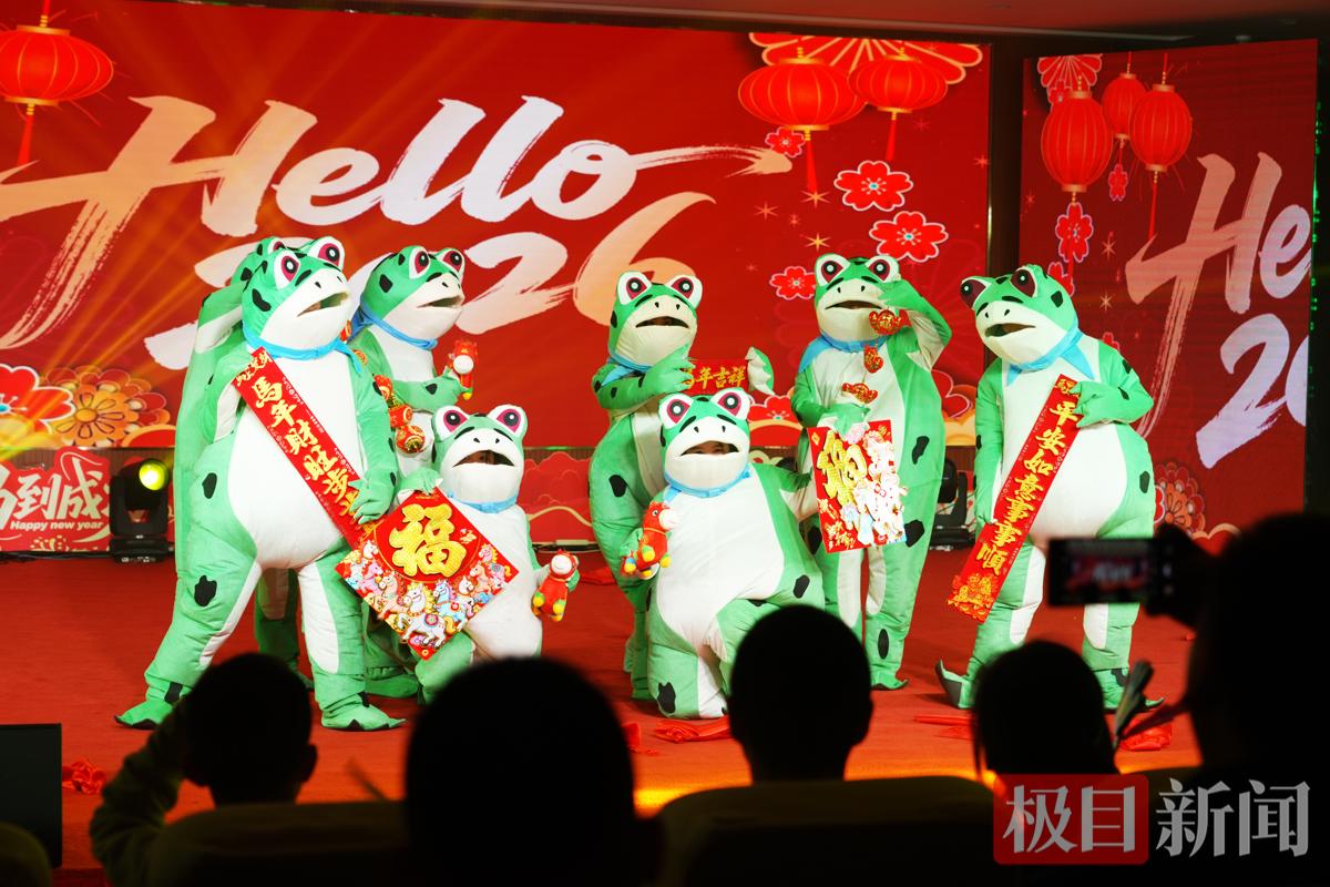 相声《奇闻轶事》包袱不断、妙语连珠,指战员们将日常执勤训练中的趣事改编成段,在捧腹大笑中传递战友情深;串烧舞蹈《听取蛙声一片》成为全场“反差萌”担当!平日里严谨细致的指战员彻底“放飞自我”——身着圆滚滚的青蛙充气服,萌态十足的扮相瞬间引爆全场笑声。