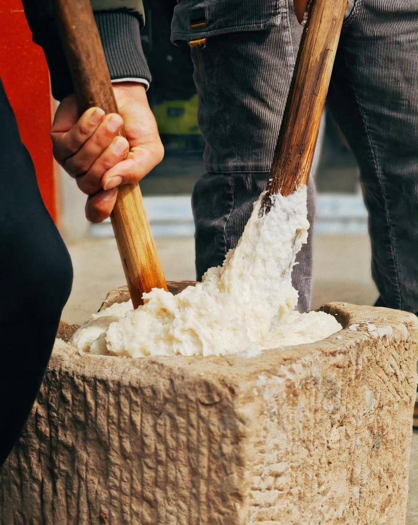 随着时代发展,机器制作逐渐普及,手工打糍粑的场景少了几分往日热闹,但在孝南不少村落,这份古老习俗依旧被用心守护。村民们说,机器做出来的糍粑方便快捷规整,少了颗粒的口感与手工捶打的韧劲,更少了邻里相聚的温情。大家聚在一起打糍粑,不只是为了一口吃食,更是重温乡情、传承习俗,在协作中拉近邻里距离,在烟火气里找回过年的仪式感。