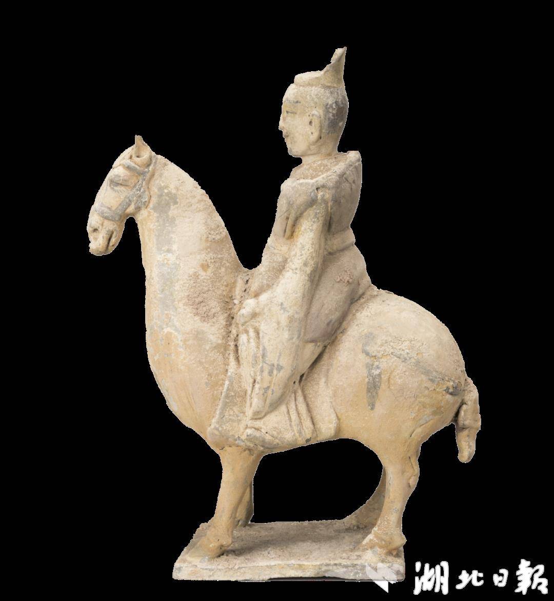 武汉博物馆“骏马含量”也颇高。在二楼古代历史厅,来自三国时期的青釉骑马瓷俑正在“营业”。马背上的骑手头戴卷沿尖帽,跨坐于马鞍之上,双手呈挥鞭欲驰之态。整个画面栩栩如生,宛如一场“三国版马术秀”。