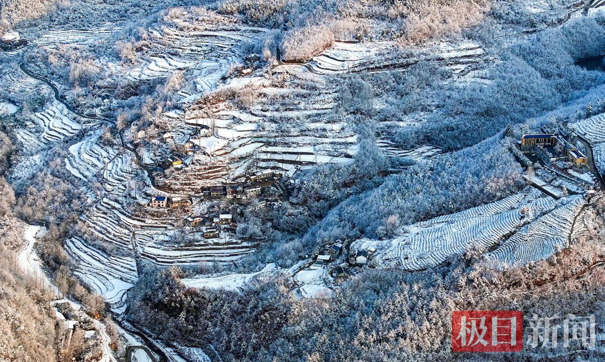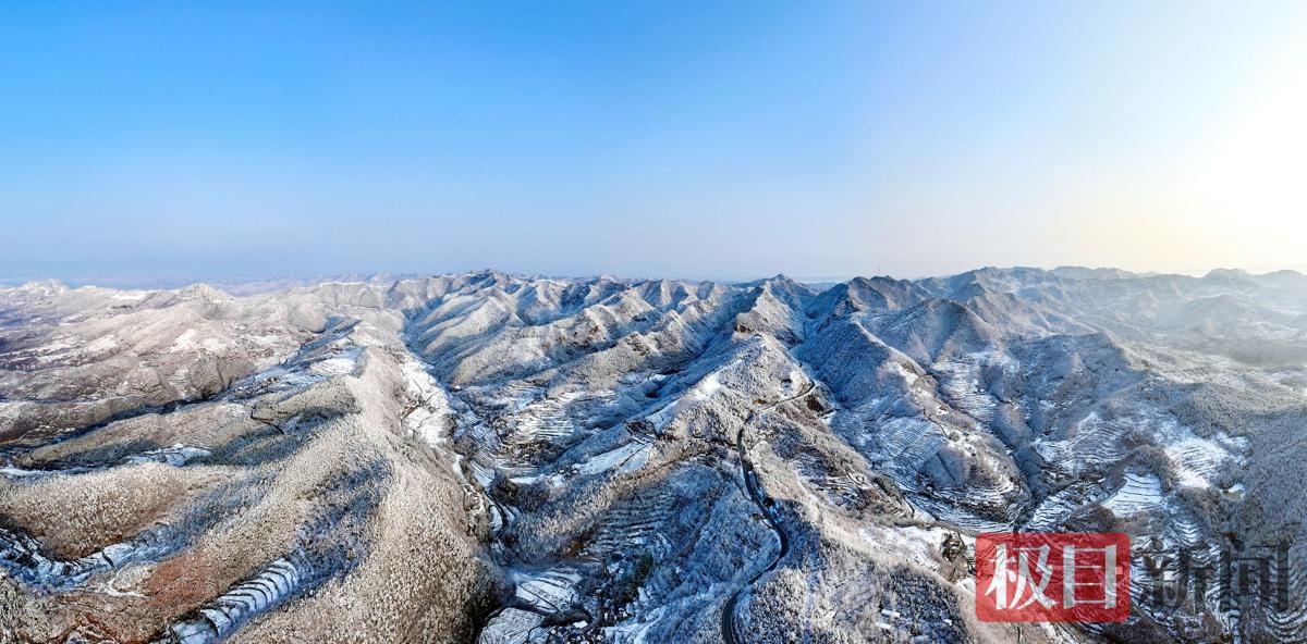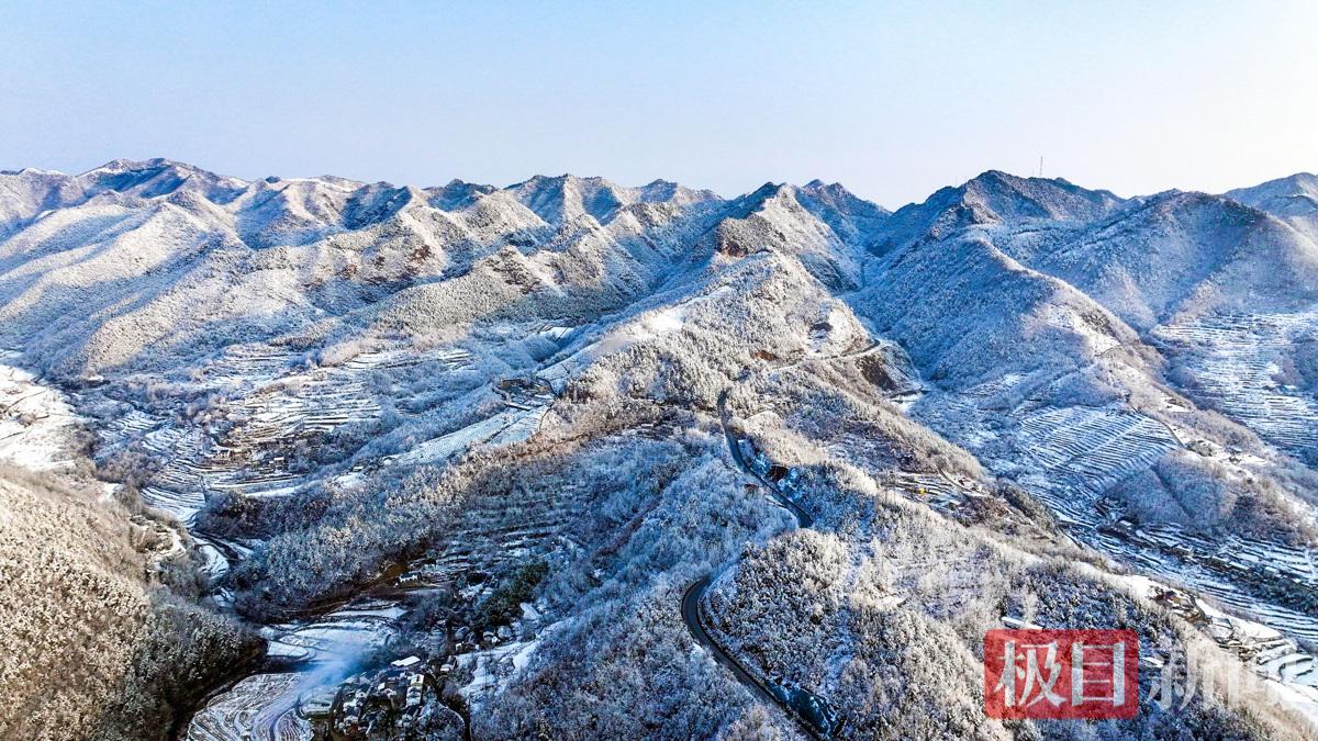 湖北省十堰市郧阳区在大年三十这天普降大雪,2月17日大年初一雪后天晴,平均海拔在800米以上的山粱到处是白雪皑皑,村庄、道路、桥梁、梯田、弯弯曲曲上山的小路,点缀在白雪之中,层层叠叠,雪后风光如画,美景入镜,瑞雪兆丰年。