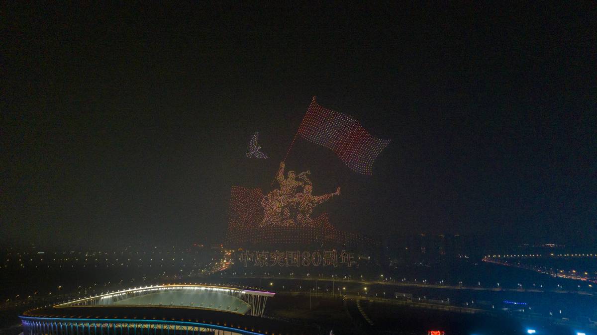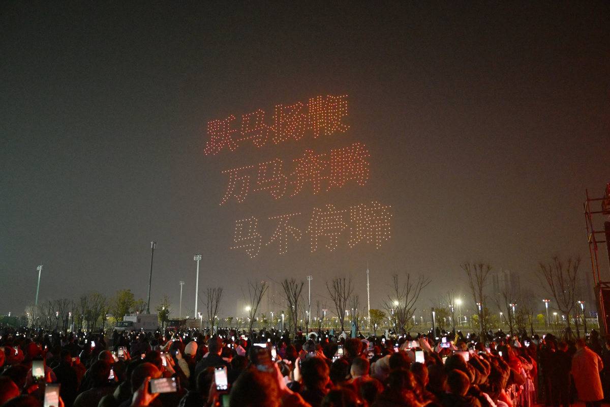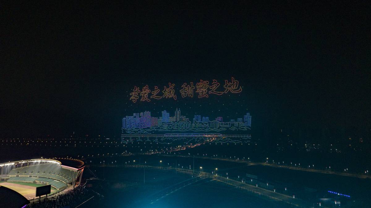 “欢孝过大年”——6000架无人机点亮孝感夜空。(湖北日报通讯员 李晨 摄)