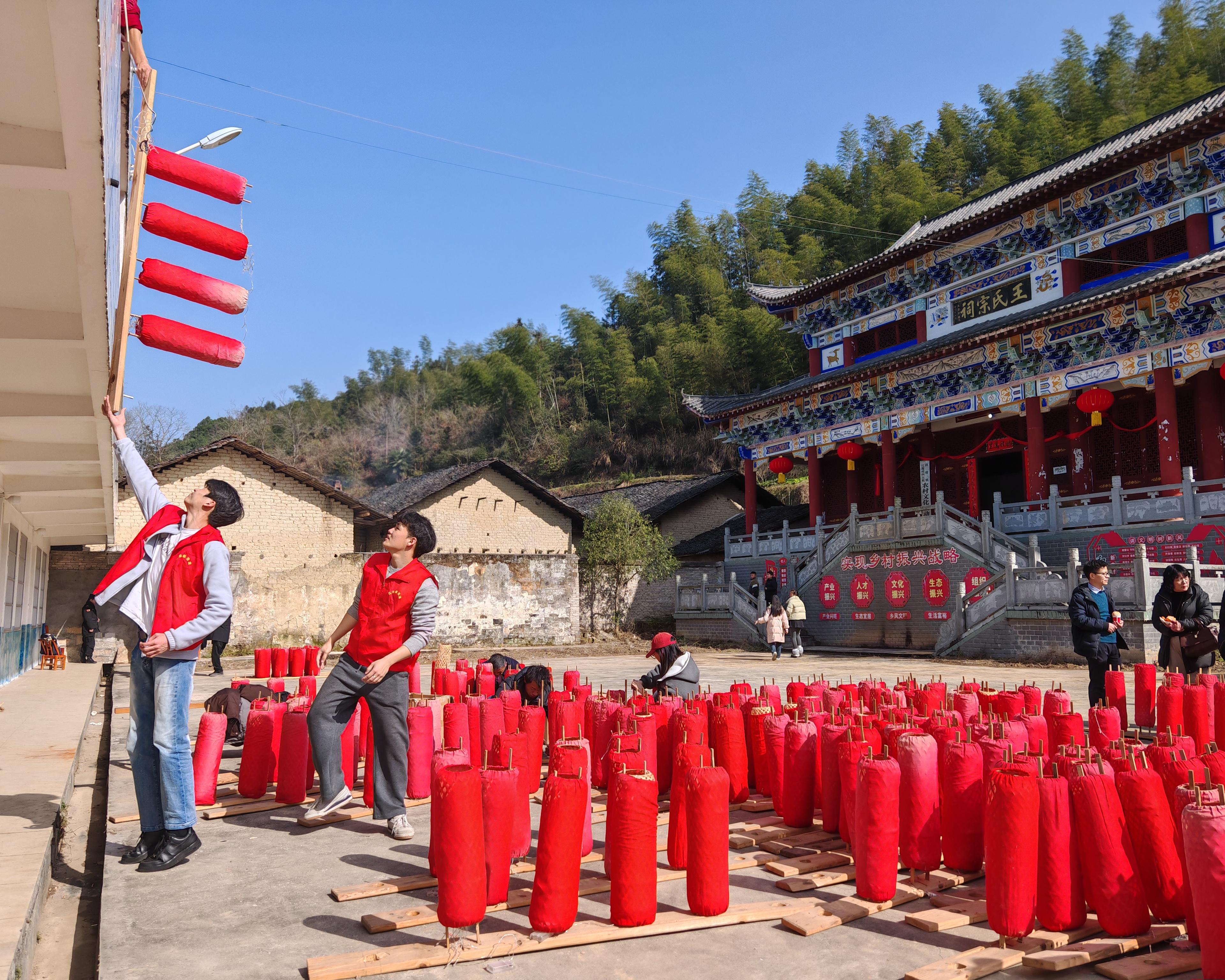 村里其他人今年也添了新行头——红马甲上绣着“江源村志愿者”“江源村板凳龙”字样。他们站在路口指引入村方向,弯腰拾起路边的纸屑,用针脚般的细致,将江源的体面缝进每一个细节。