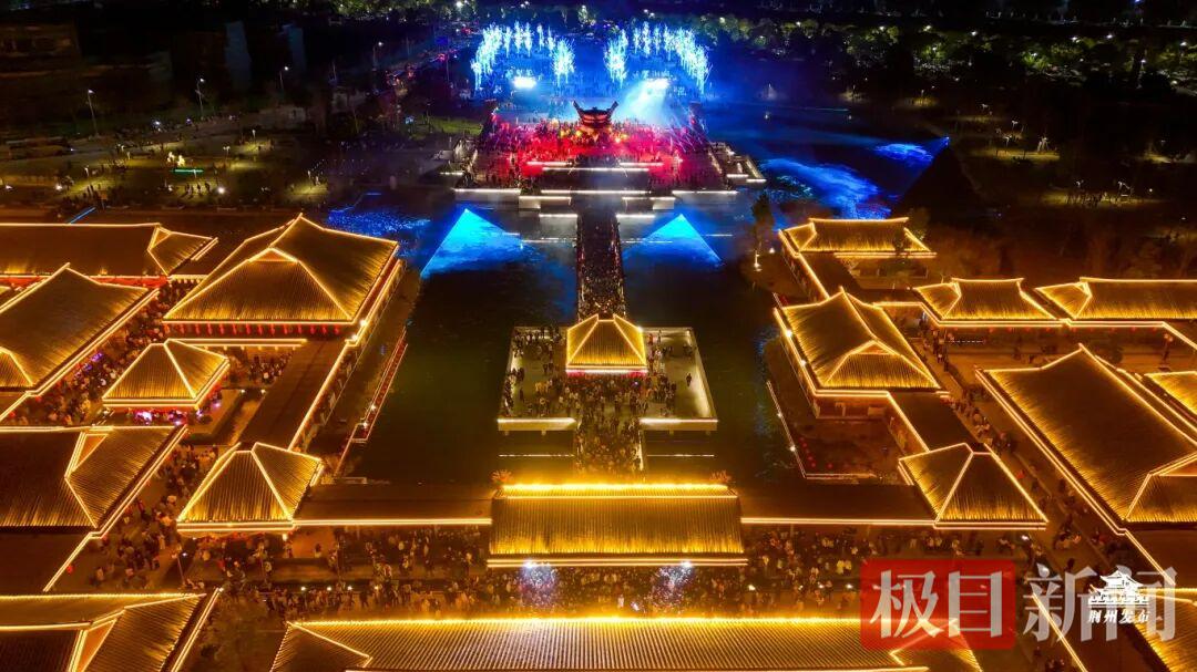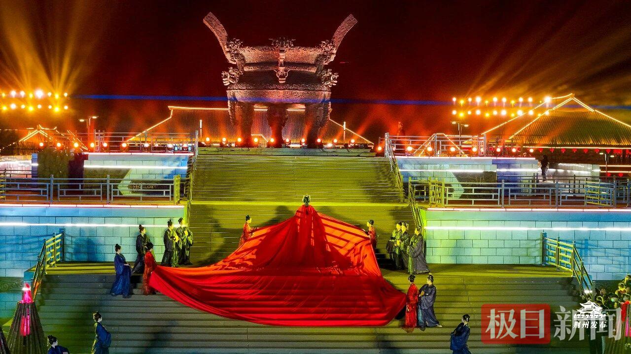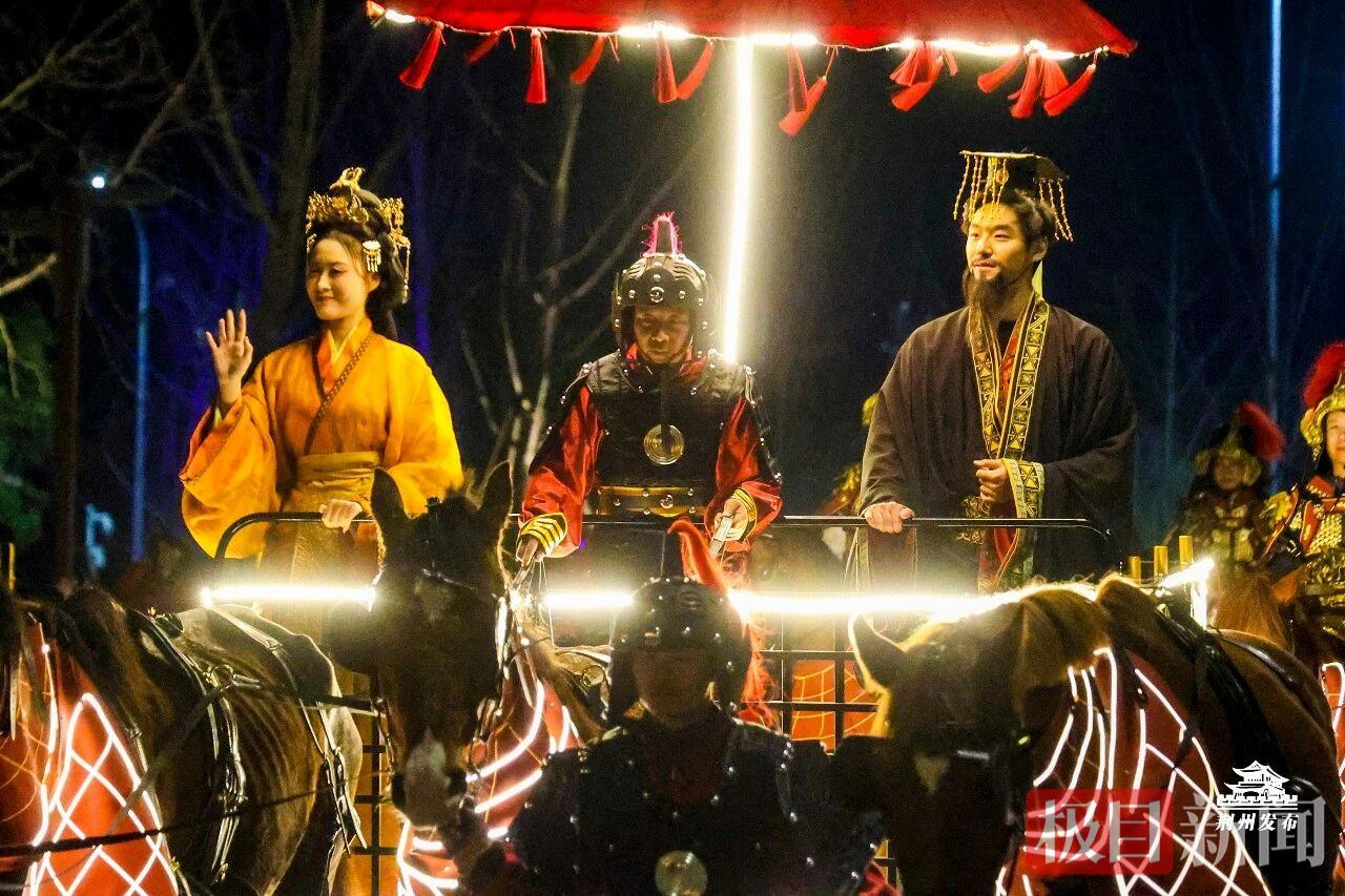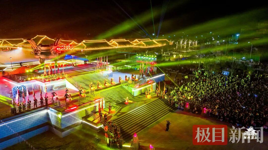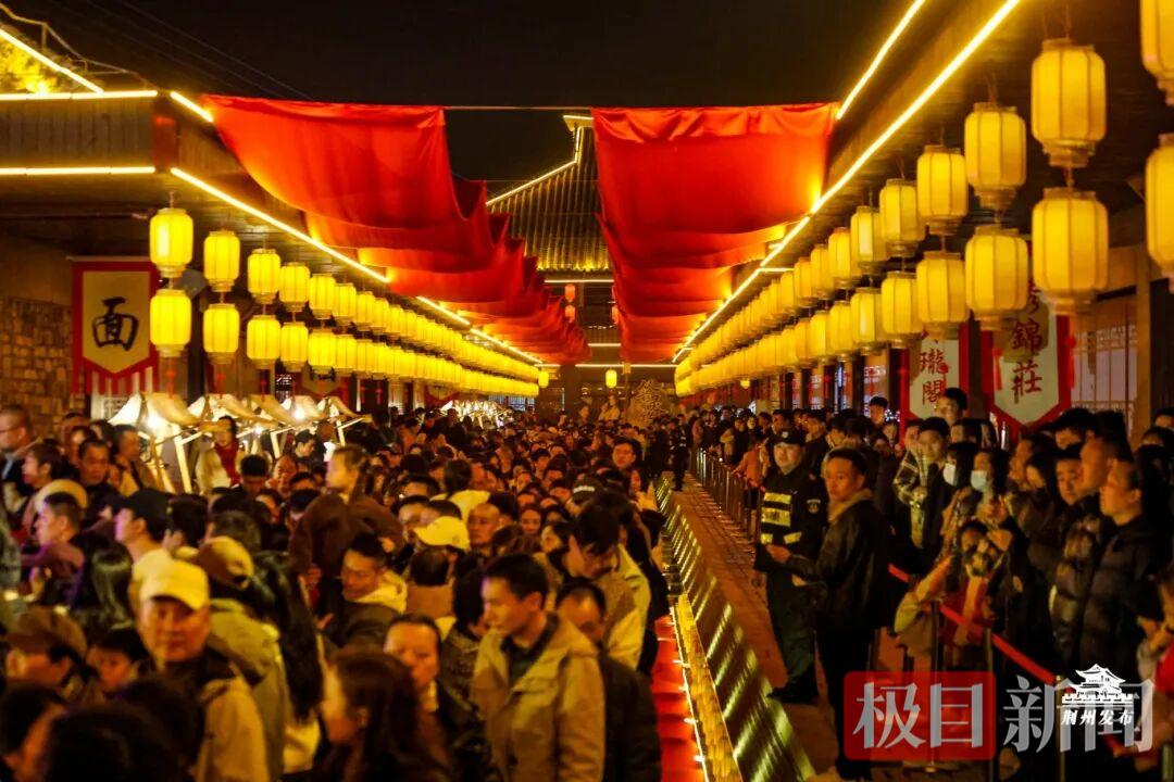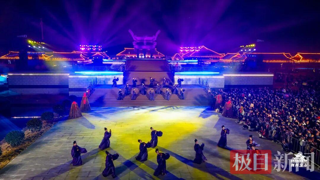 战鼓声声裂长空,楚鼎金光照古今。2月21日,农历正月初五,湖北荆州纪南文旅区楚文化数字产业园内灯火璀璨,大型沉浸式文旅项目“荆州十二时辰·楚乐八百年”正式首演,上万名市民游客共赴这场穿越千年的楚文化盛宴。