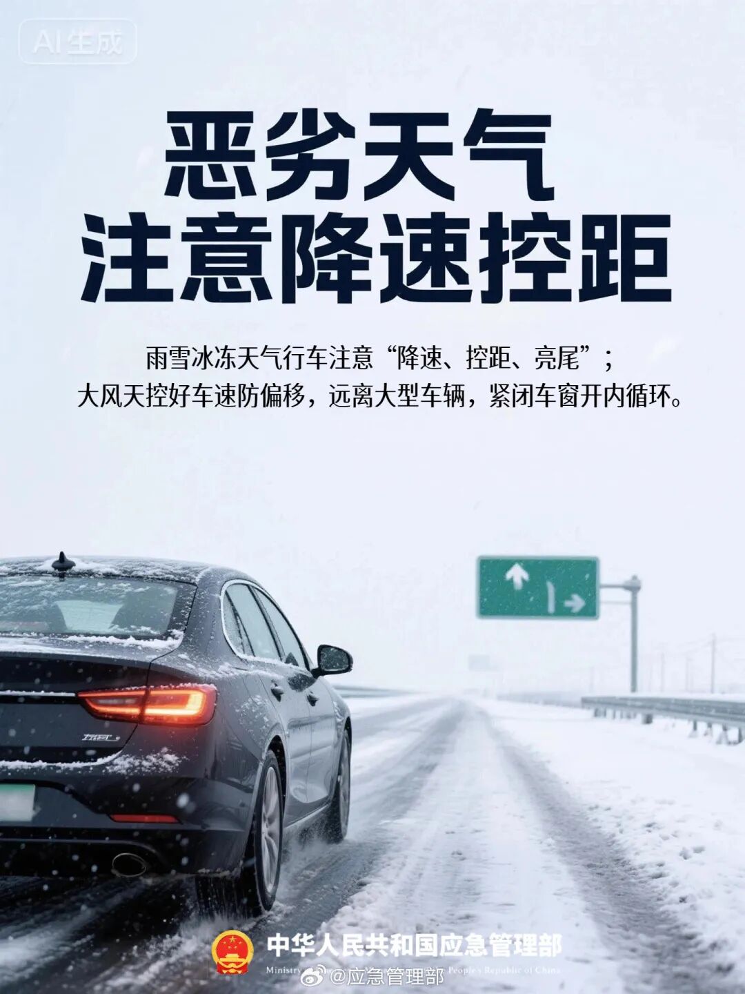 目前正值春运返程高峰期,我省出现降雨降温天气。雨天路面湿滑,能见度降低,请各位驾驶员务必“降速、控距、亮尾”,谨慎驾驶,确保行车安全。