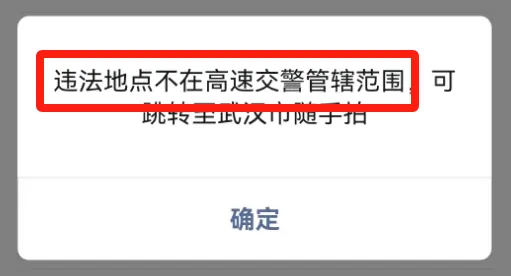 出现“违法地点不在管辖范围”的提示