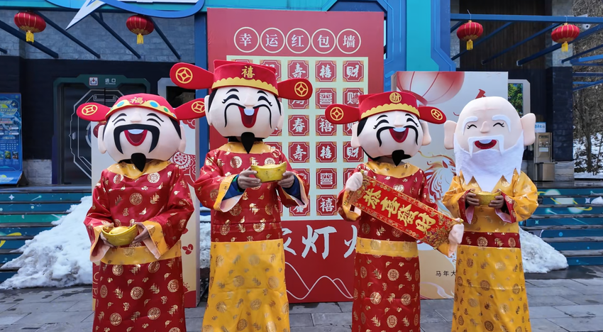 静谧山水间,年味悄然流淌。官门山景区沿步道铺就的年味长卷,让游客在休憩赏景中感受雅致年俗。福字墙红得热烈,灯笼廊暖得雅致,民俗展板图文并茂,传统年俗的厚重与山水灵秀完美交融。
