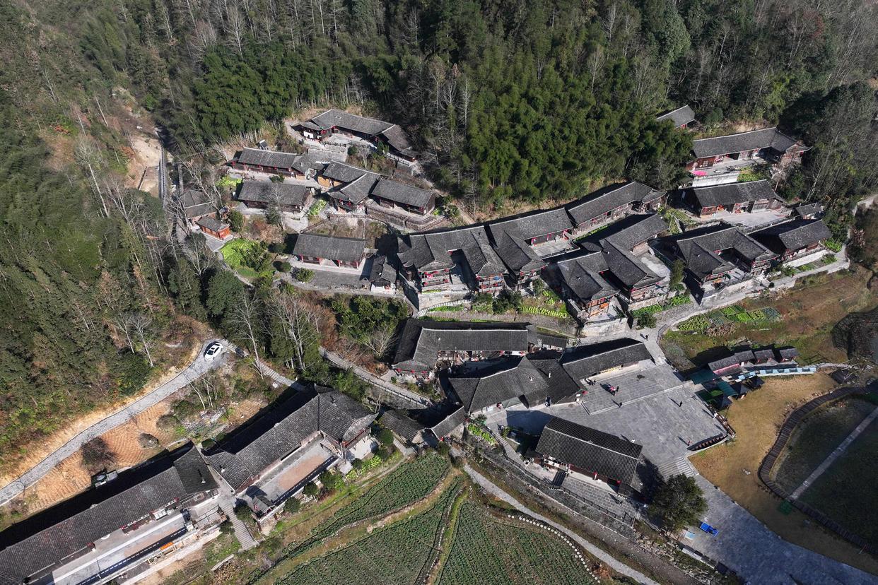 彭家寨吊脚楼群(无人机照片)。新华社发(陈绪开 摄)