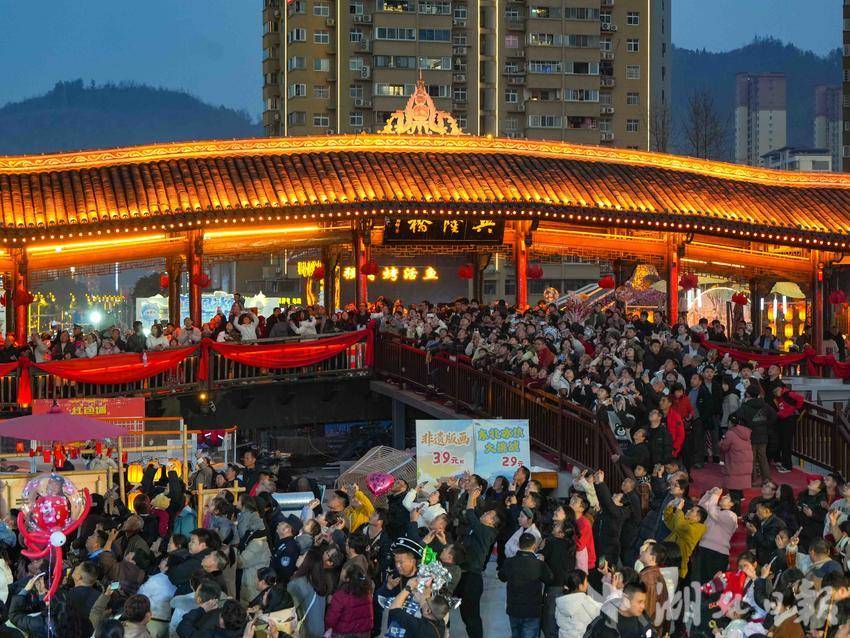 湖北日报客户端讯(通讯员王海)“不出十五都是年”,时至2026年2月26日,湖北宣恩依旧年味浓郁,仙山贡水旅游区人潮涌动,各类夜游演艺、民俗体验活动热度不减,贡水河畔的夜晚持续沸腾,成为游客体验新春浪漫的热门目的地。