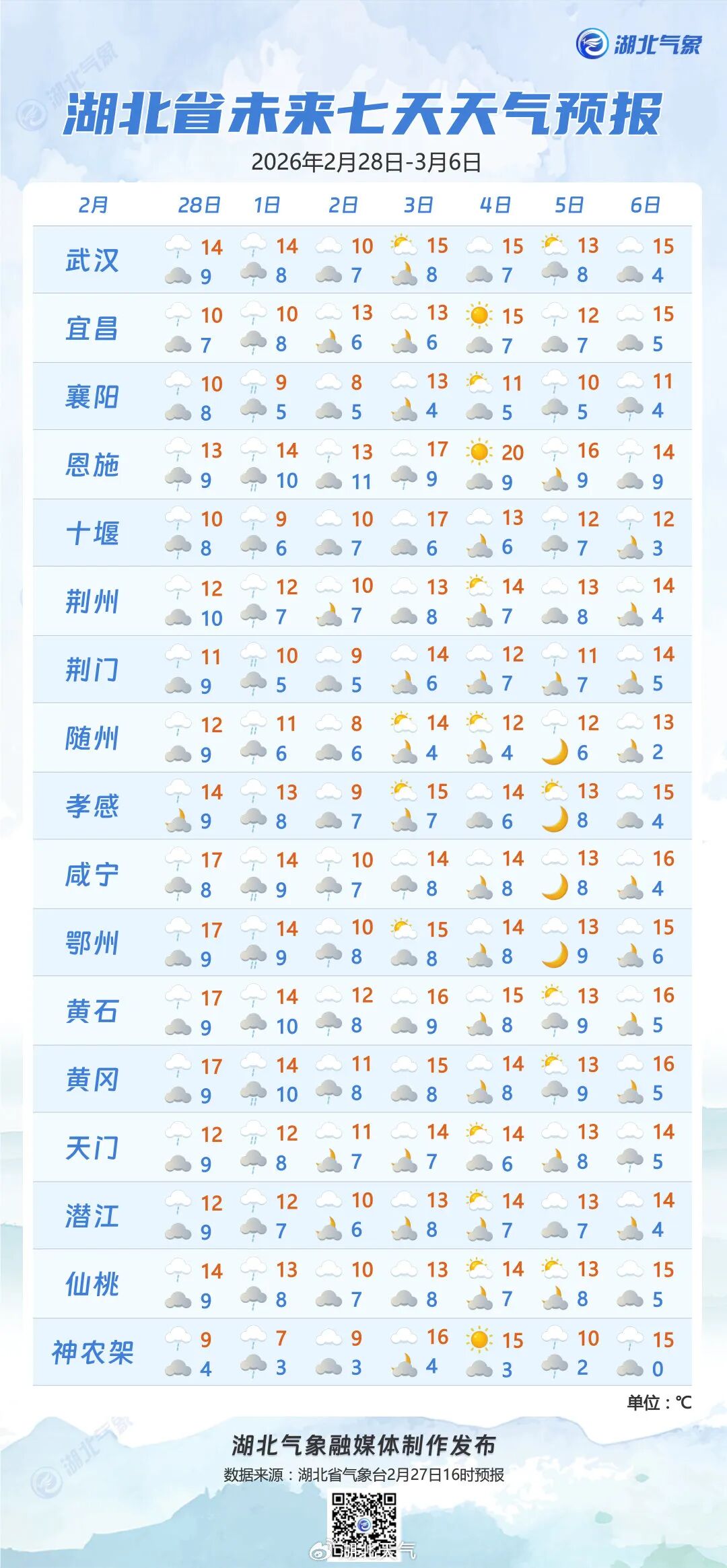 2月28日:阴天转小到中雨,偏北风2到3级转3到4级、阵风5到6级,气温9~14℃;