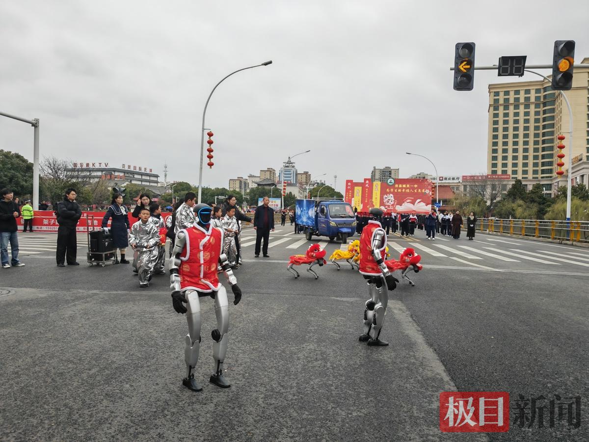 上午9时,激昂的锣鼓响彻全城。巡游队伍自唐城广场出发,沿主干道一路行进至孙家湾大桥头。诗经吟诵、黄酒酿造技艺展示擦亮“诗经故里”“黄酒之乡”文化名片;舞龙、船灯、秧歌、腰鼓等经典民俗展演饱含乡土气息。更令人惊喜的是,无人驾驶拖拉机、无人投递车、智能机器人等科技装备与国潮动漫、街舞快闪同台亮相,让千年民俗焕发时代新彩。
