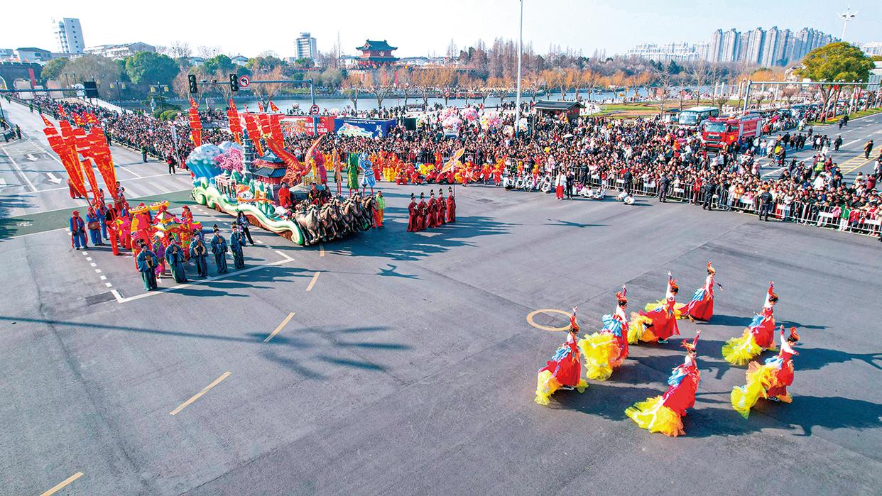 2月19日,“荆楚岁时记”年俗巡游在荆州古城荆南路上演。(荆州市融媒体中心供图)