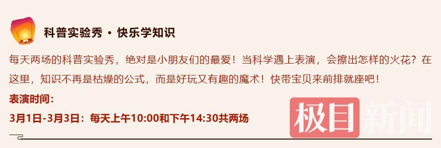 3月3日,举办新春炎帝文化庙会,搭配特色美食、亲子互动、祈福纳祥等板块,打造“逛、吃、玩、赏、购”一站式新春体验。8:30至17:30,推出炎帝祭奠、威风锣鼓、独人桥、踩高跷、秧歌队、舞龙、舞狮、汉船等丰富的文艺活动。