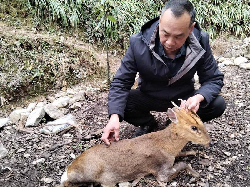 接到求助后,神农架林区新华林场迅速响应。护林员携带救助工具第一时间赶赴事发现场,经辨认,确认这只受伤的动物是国家“三有”保护野生动物——小麂。现场,林场立即启动应急救助流程,一方面向上级野生动物保护部门报告情况,一方面紧急联系专业的野生动物救护站,寻求技术支援。