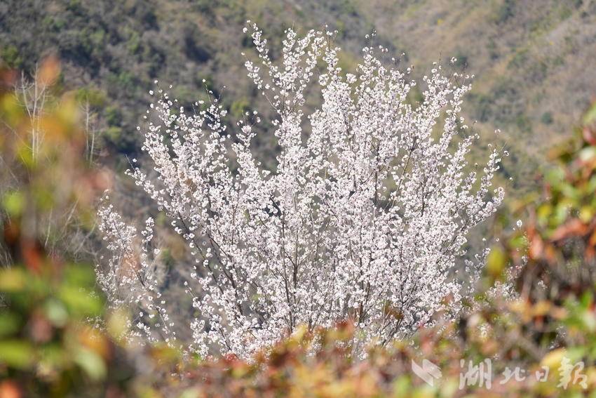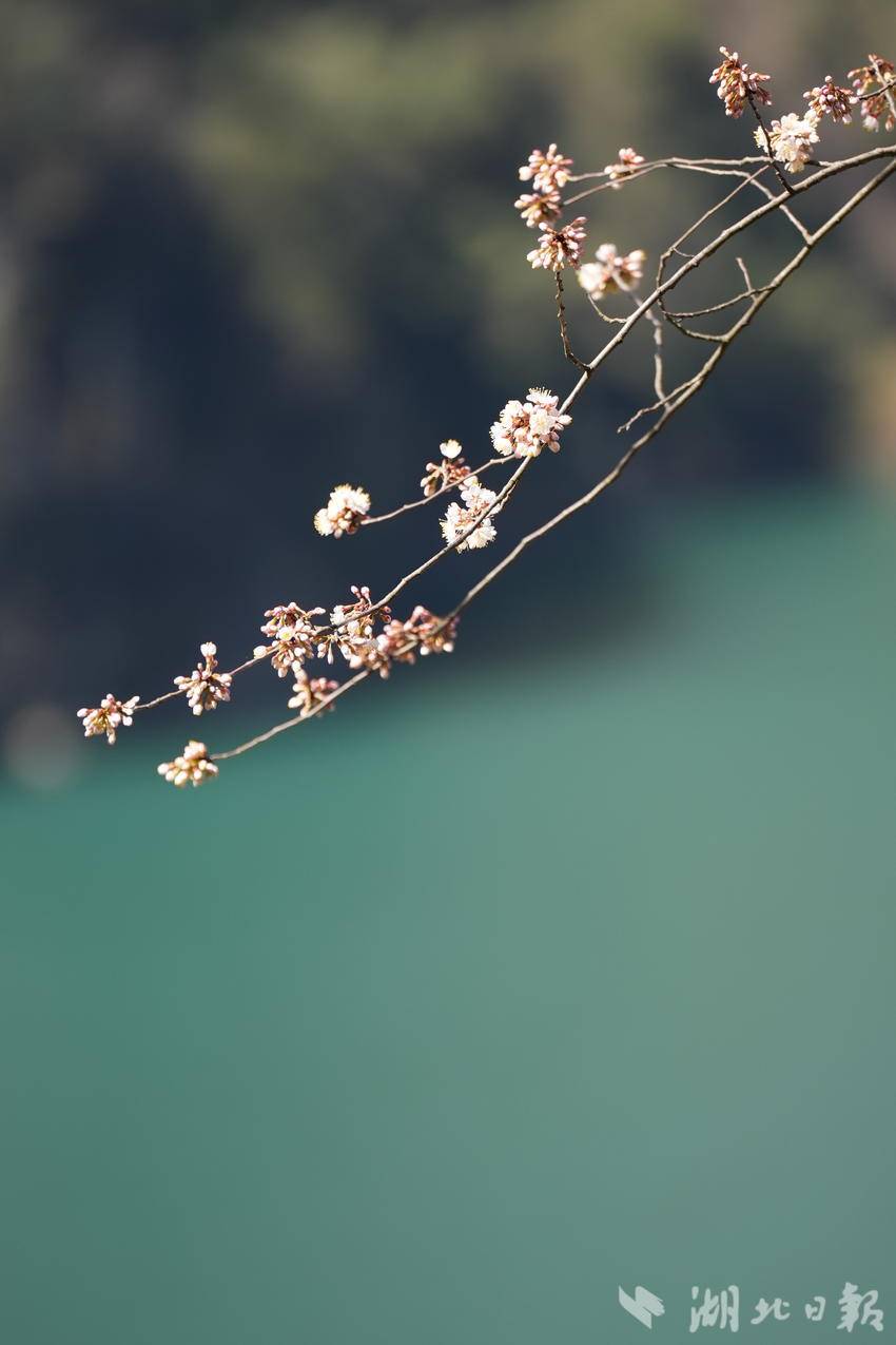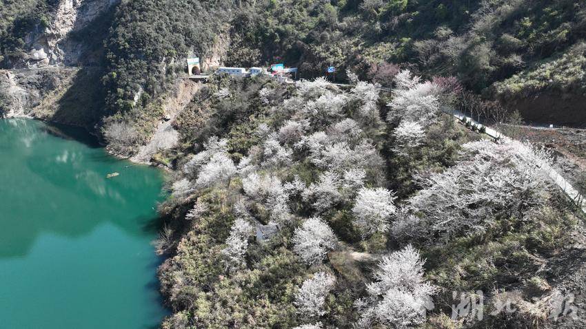 湖北日报客户端讯(通讯员明康、陶艺升、熊乾锋)3月5日,记者沿着官渡-柳林-洪大路一线,到堵河源保护区探访春日山景。沿线山峦,野桃树上以素雅白花为主,少数红花点缀其中,散落于山间,为巍峨的群山增添了几分灵动生机。在G242国道松树岭路段,一片成规模的野桃林豁然开朗,粉白花枝交织成片,与蜿蜒的山路相映成趣。沿途碧绿如绸的堵河静静环绕群山,河水清冽,串联起散落的星星点点桃花。