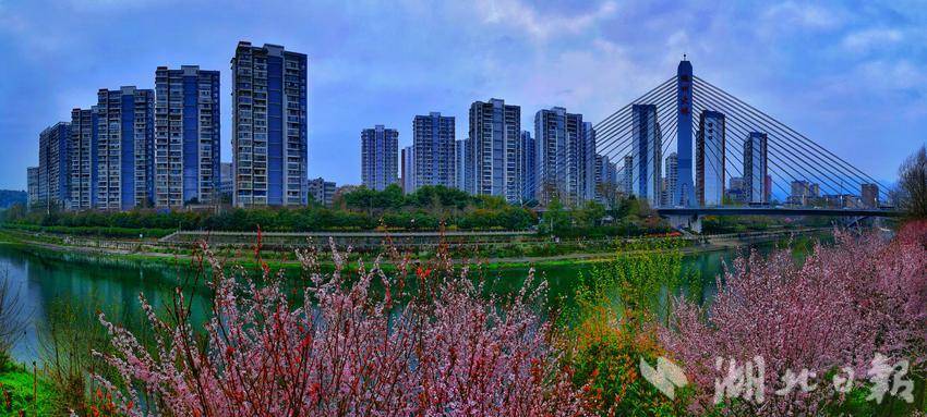 湖北日报客户端讯(通讯员 冯本勇)3月7日,恩施城区清江河岸施州桥畔,樱花盛开,高楼林立,尽入画卷。一河碧水护城,满岸红花映衬,春日的温柔与城市的繁华在此相融,生机盎然,尽收心底,醉人心脾。