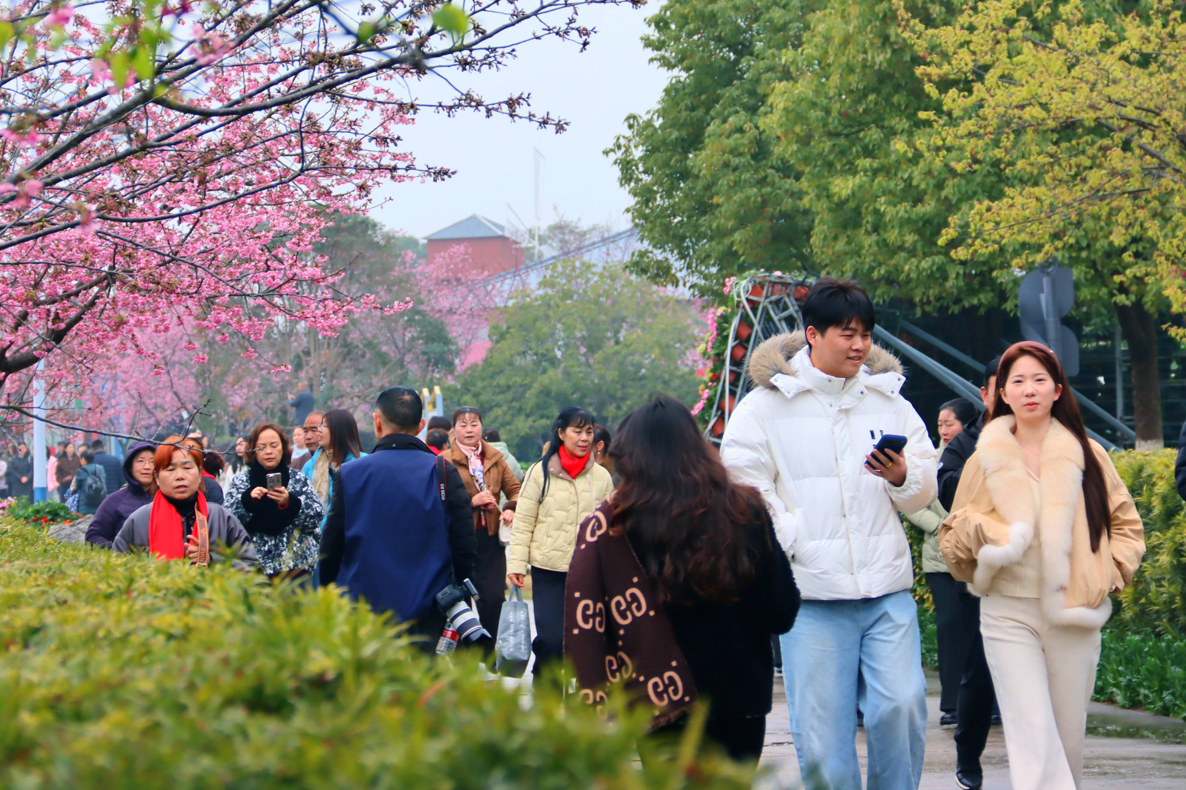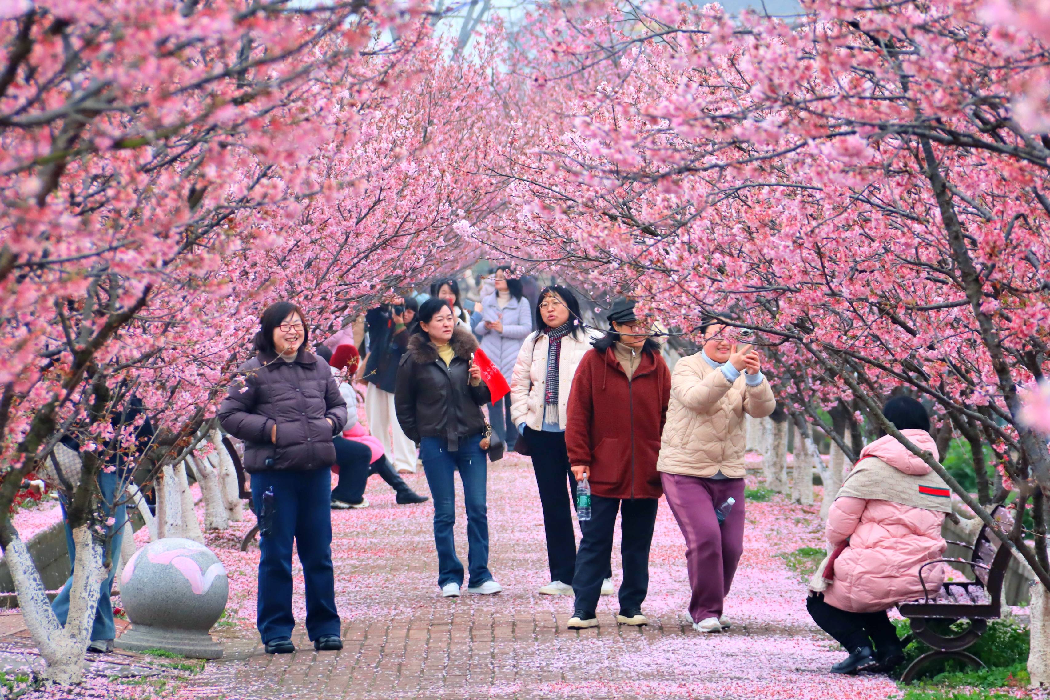 湖北日报客户端讯(通讯员 黄晓莲)春风拂枝,粉樱似海。近日,枝江同心花海景区内,千亩樱花次第绽放,百米樱花长廊落英缤纷,吸引了大批游客慕名而来,共赴这场春日之约,掀起了春季踏青赏樱的热潮。