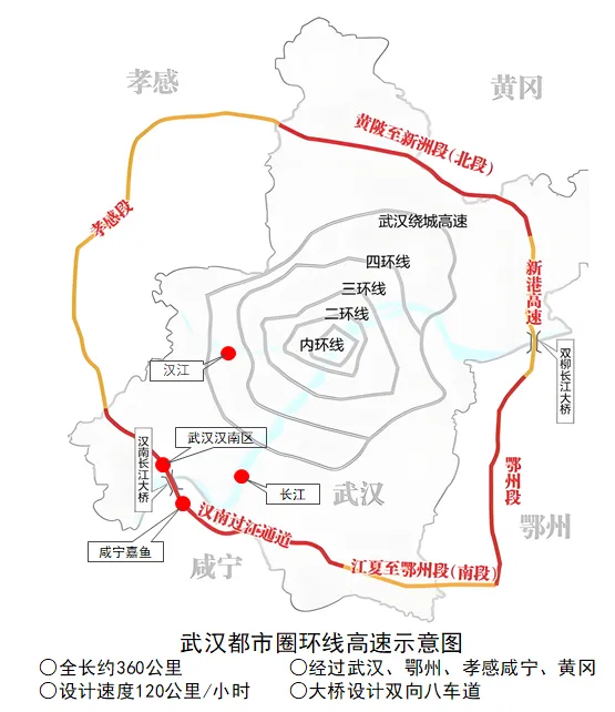 2026年湖北省两会提出,坚持以同城化理念超常规打造广域武汉大都市圈,并将其定位为全国重要增长极、世界级大都市圈。武汉第13座长江大桥——汉南长江大桥,是武汉都市圈环线高速公路(俗称武汉“六环线”)的控制性工程。它途经武汉、孝感、咸宁、鄂州、黄冈等地,全长约360公里。分为东、南、西、北4个路线段及新港高速公路双柳长江大桥、汉南长江大桥两座长江大桥。项目建成后,将成为武汉都市圈“1小时高速公路通勤圈”的核心架构,蔡甸、汉南、江夏、嘉鱼等地将实现半小时通达。