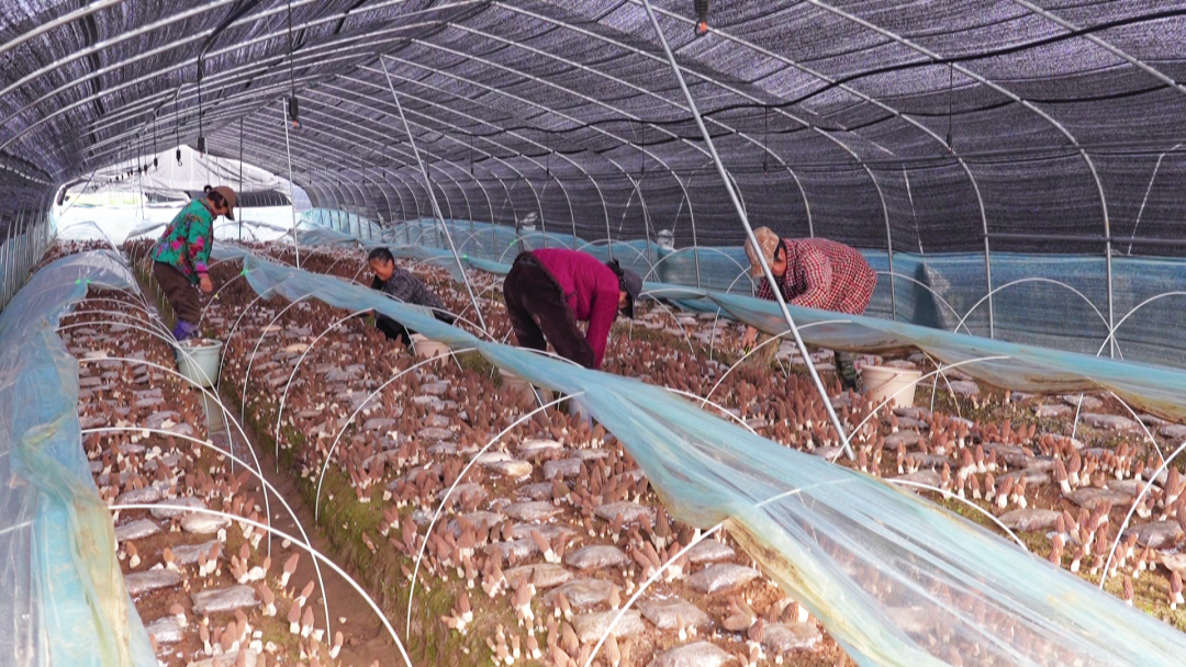 羊肚菌种植周期短、见效快,从播种到收获仅需四个月,恰好盘活了冬季闲置农田,实现“冬闲变冬忙、闲田变良田”。基地通过土地流转、就近用工等方式,日均吸纳约150名村民务工,让群众在家门口就能实现稳定增收。“在这里做事挺好,一天能挣百来块钱,和大家一起干活,既开心又满意。”基地工人王祝英的话语里满是幸福感。