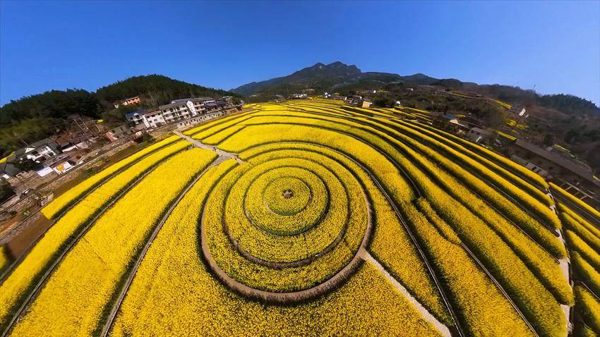 湖北日报客户端讯 (通讯员袁选国)360度镜头掠过,春风轻抚龙池。千亩油菜花沿梯田层层铺展,从山脚漫至山腰,汇成一片流动的金色海洋。