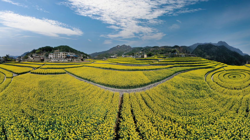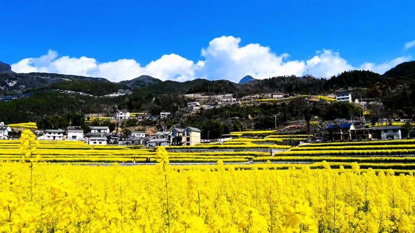 樱花似雪,杏花如烟,李花清雅,油菜花漫山金黄。