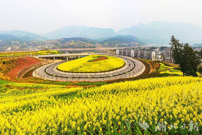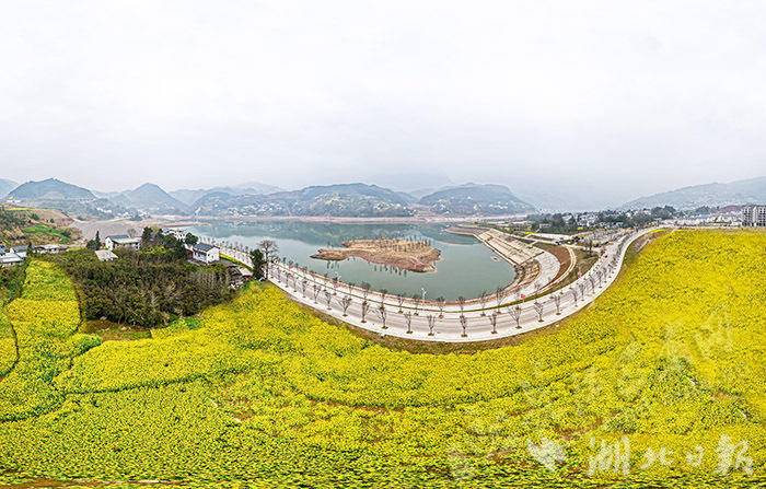 春和景明,万物复苏,巴东县溪丘湾乡平阳坝神农湖边,金灿灿的油菜花缀满湖岸,与静谧的湖水、错落的民居构成一幅“花在岸上开,影在水中游”的春日盛景,吸引不少游客前来踏青赏景、打卡留念。