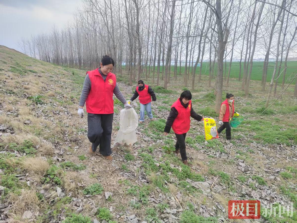 潜江市园林街道袁桥社区的志愿者们在东荆河大堤沿线清理垃圾。