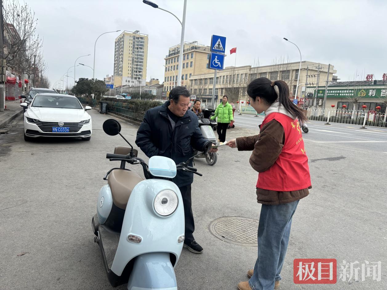 潜江市周矶街道志愿者在学雷锋纪念日志愿服务活动中走上街头开展文明交通劝导。