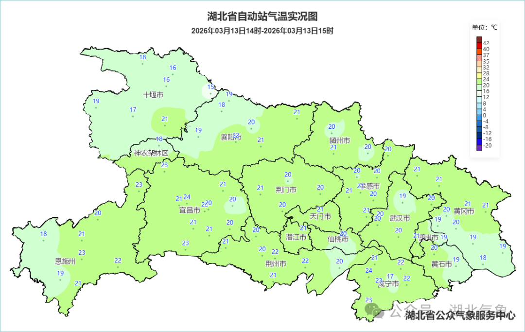 3月14日8时至15日8时,鄂西北、鄂西南阴天有小到中雨,局地大雨,其中鄂西北高海拔地区有雨夹雪或雪;鄂东北、江汉平原多云转小雨;其他地区晴天转多云。最高气温鄂西北13~18℃、其他地区19~24℃,最低气温6~11℃。偏北风2到3级转3到4级、阵风5到7级。
