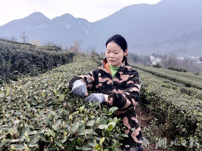 湖北日报客户端讯(通讯员胡自丹、唐和、陈金彩)3月12日,恩施市白杨坪镇麂子渡村的4500亩茶园迎来春茶开采季。层层叠叠的茶垄顺着山势铺展,嫩绿的新芽在枝头舒展,茶农们挎着竹篮穿梭其间,指尖翻飞间采摘下今年第一缕春茶。