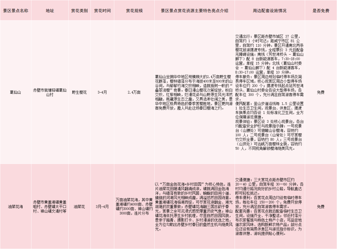 开幕式暨文艺演出。本届樱花季的开幕式将于3月14日上午在葛仙山赏樱入口处举行。活动当天将举行乡村文艺展演,通过丰富多彩的艺术形式,生动展现赤壁新农村的精神风貌与独特的文化魅力。
