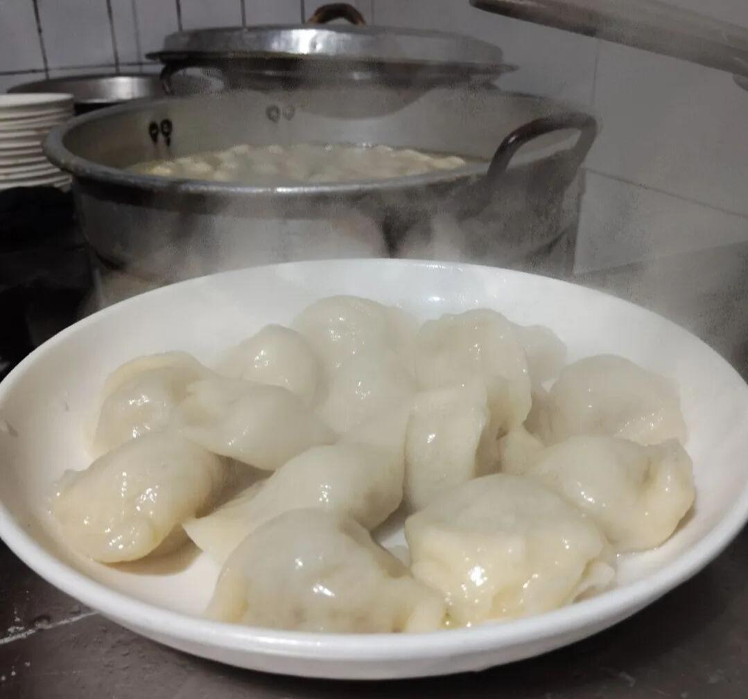 队伍缓缓向前挪动,很快就轮到了我。眼前一口硕大的铁锅沸腾着,沸水翻滚,白胖的饺子在锅里上下沉浮,像一群嬉戏的白鱼。煮饺子的大姐手脚麻利,手持长柄漏勺不停搅动,时不时点入凉水,让饺子受热均匀、皮筋馅香。她动作娴熟,一气呵成,脸上带着温和的笑意,日复一日重复着同样的动作,却从未有过敷衍。