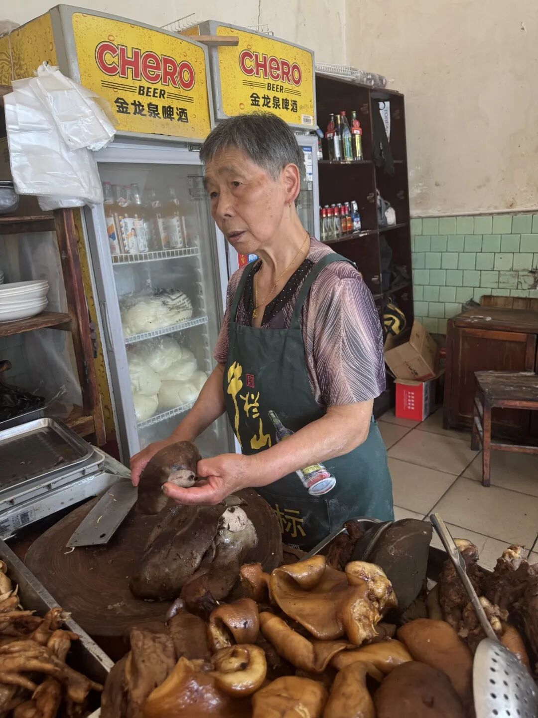 她们坚守着最朴素的初心,几十年如一日,只做手工水饺,只涨过三次价,一两七个的规矩从未改变。收入除去成本,大家平分,不图大富大贵,只图相守相伴,只图让老顾客吃上一口熟悉的味道。每天凌晨三四点,她们就起床备料、和面、调馅、卤菜,天不亮就开门迎客,一直忙到深夜,一年只在春节休息五天,风雨无阻,从未间断。在我眼里,她们十一位老姐妹不离不弃、相互依存、同甘共苦,这便是最好的管理团队。