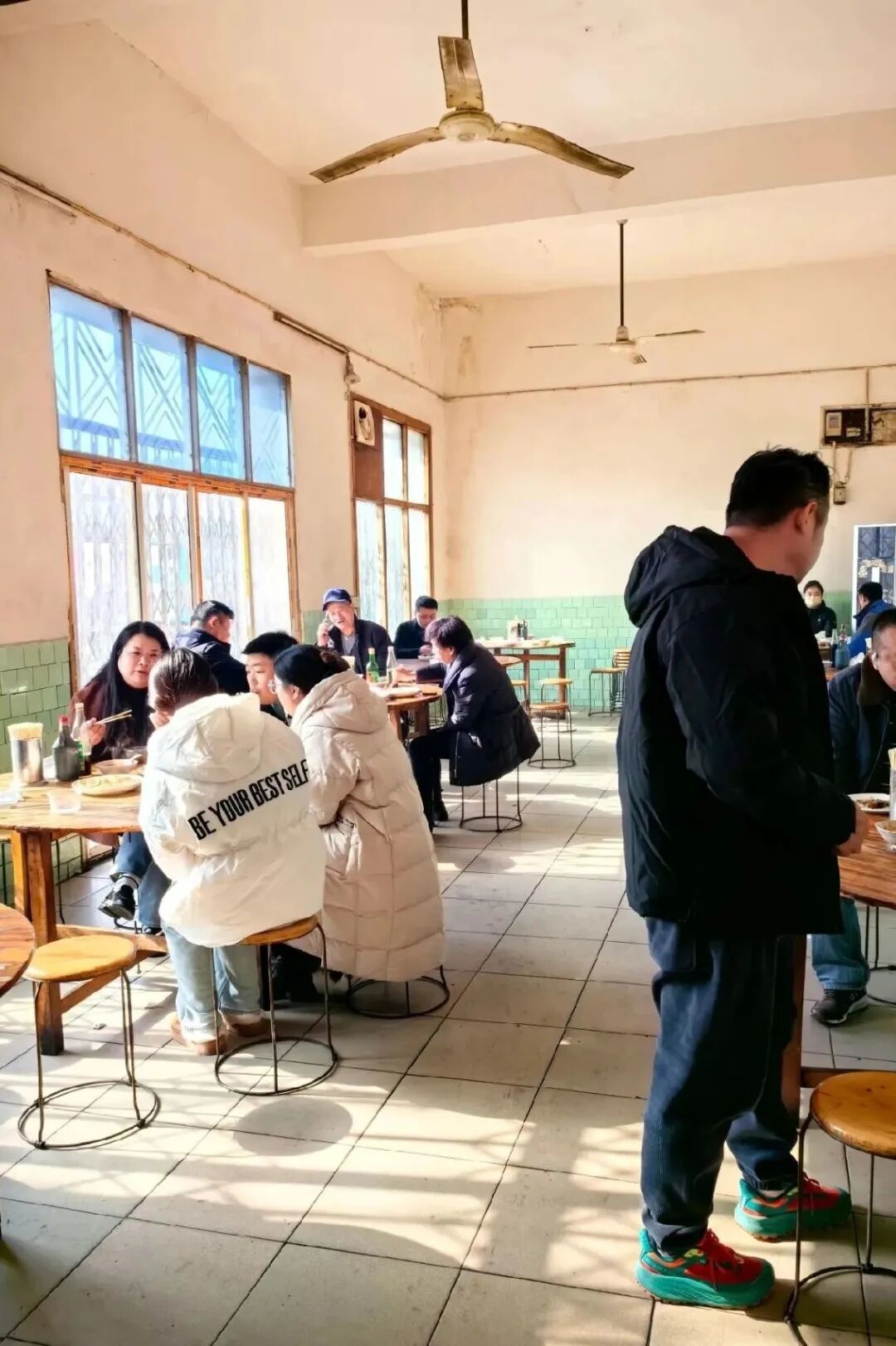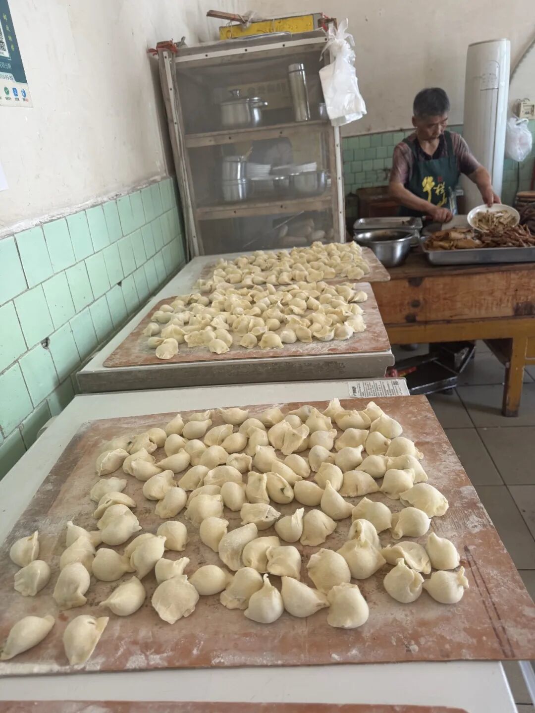 想吃上这口美味,还得老老实实排队。小店不大,几张木桌摆得紧凑,墙面豆绿色的釉面砖有些斑驳,桌角带着岁月磨出的光滑包浆,却干净整洁。排队的人不多不少,十五六位食客有序等候,有穿着工装的工人,有背着书包的学生,有提着菜篮的老街坊,大家互不催促,安静地等着属于自己的那碗热饺。我在心里默默盘算,店里一两七个饺子,我胃口不小,得点二两,再搭配一盘卤菜拼盘,荤素相间,才算圆满。