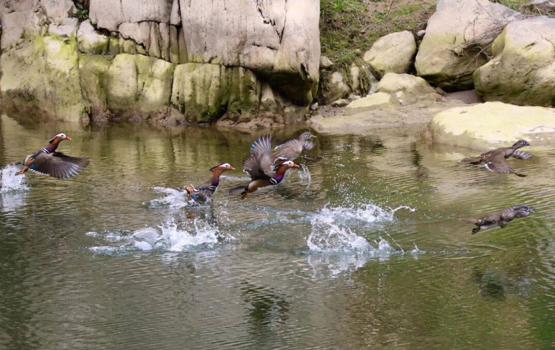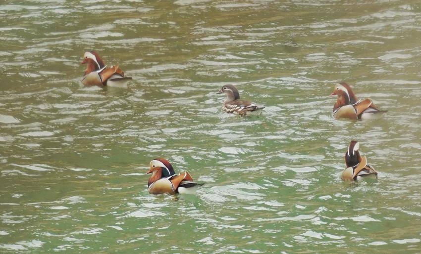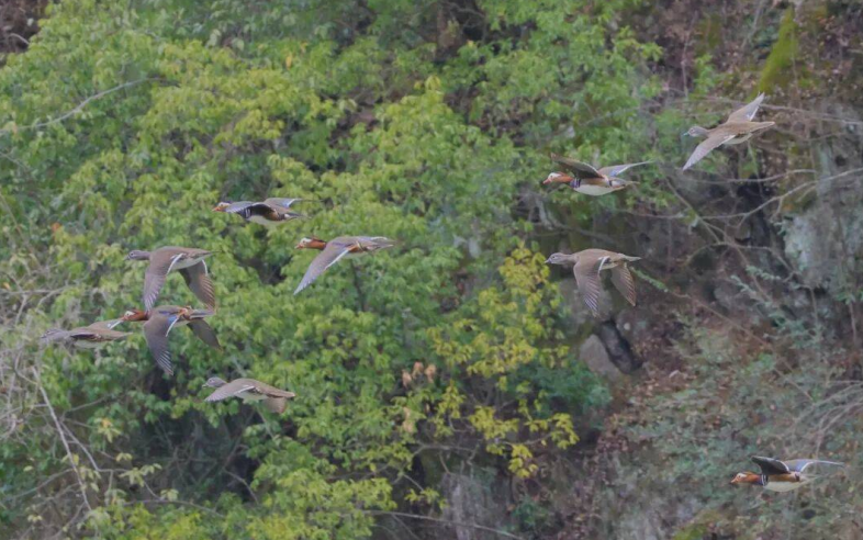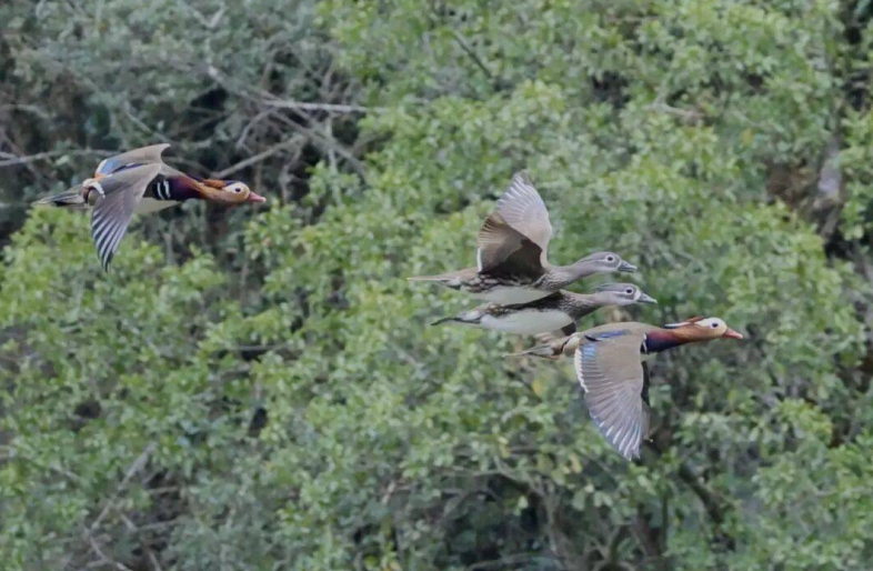 鸳鸯是国家二级重点保护野生动物,对栖息地同样敏感。鸳鸯生性机警,善游泳、潜水和飞行,春冬季主要以青草、树叶、植物果实等为食,常成群活动。此次在南河段发现的鸳鸯群体,数量可观、状态良好,印证南河已成为它们理想的栖息觅食场所。