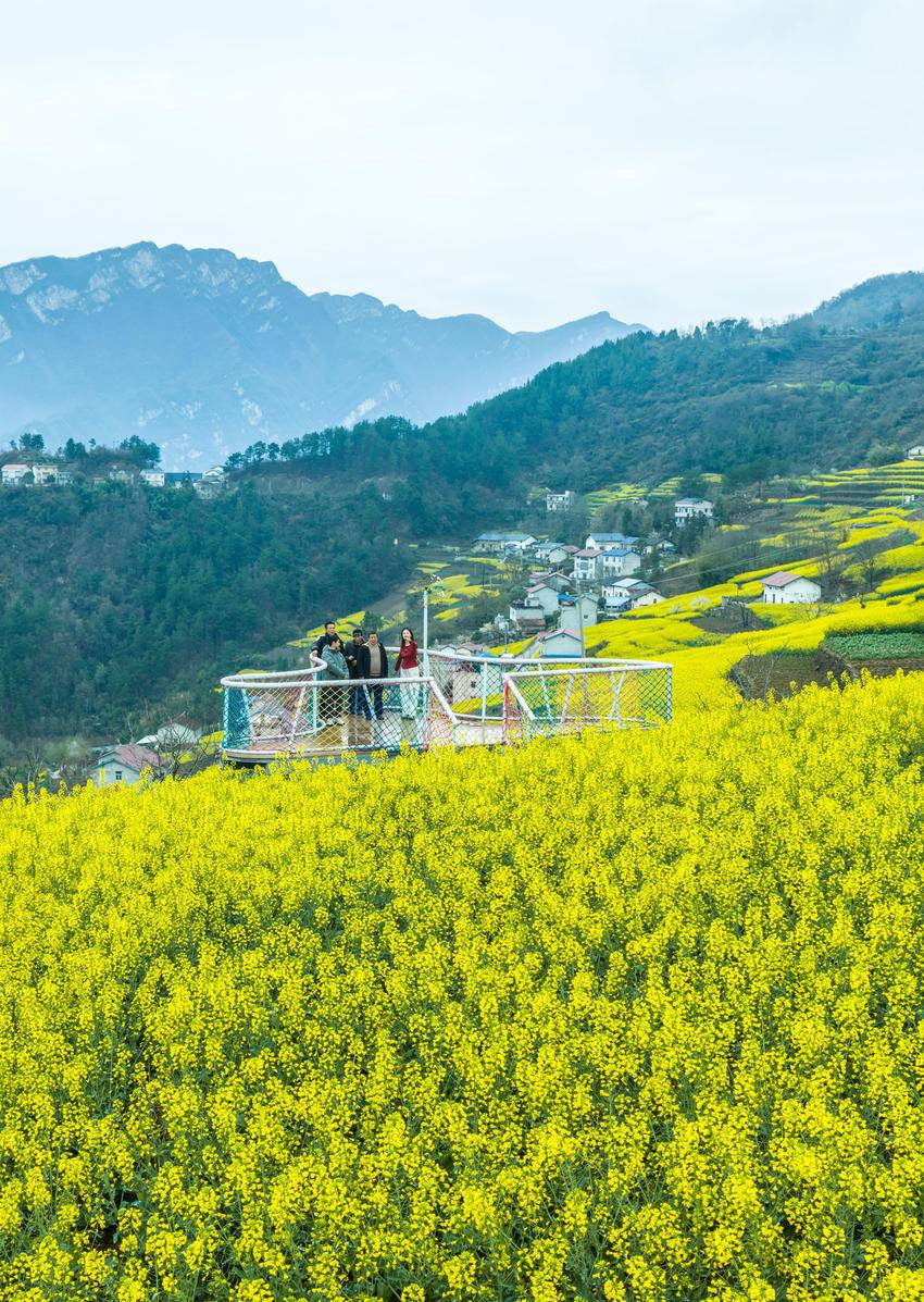 湖北日报客户端讯(通讯员王罡、周璐、谭倩)近日,三峡库区湖北省宜昌市秭归县的油菜花海进入盛花期,鎏金的花浪、蜿蜒的步道、错落的民居与游客的笑脸相映成趣,勾勒出一幅生机盎然的春日乡村新画卷。当地在规模粮油生产基地植入休闲观光平台、游步道等旅游基础设施,充分挖掘特色民俗文化,推动农文旅深度融合,发展现代农业,助力乡村振兴。