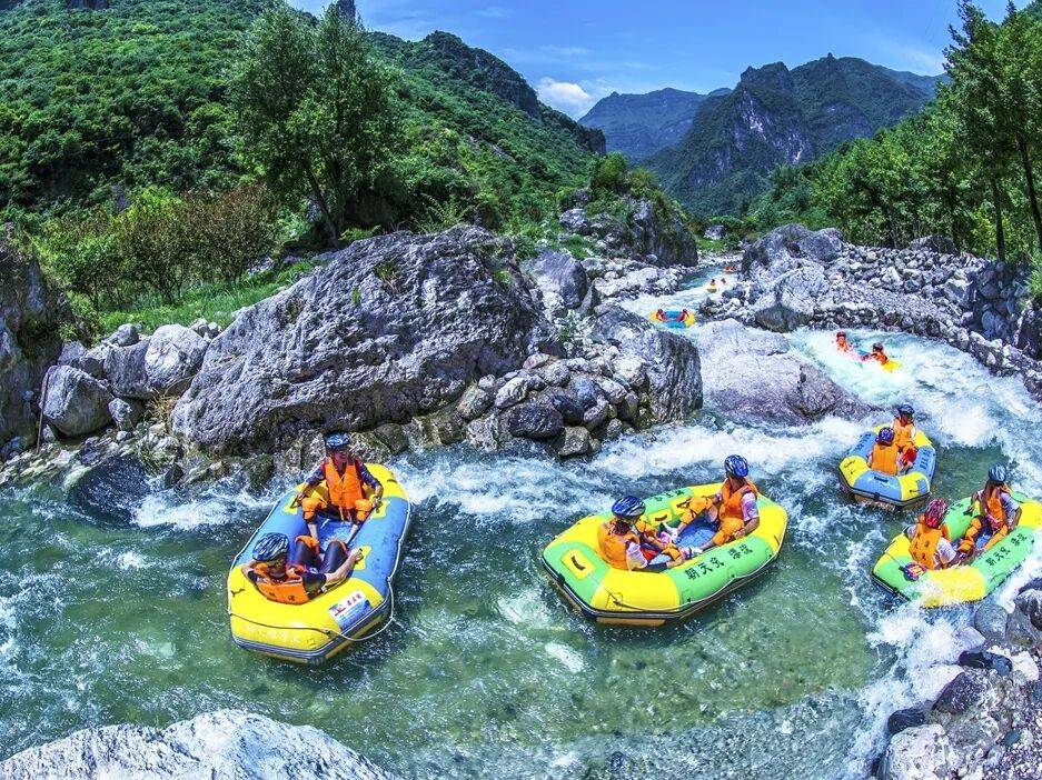 朝天吼作为国家4A级景区和省级旅游度假区,早已凭借优质的漂流资源闻名,不仅推出了浪漫夜漂,更解锁了光影隧洞漂流这一新玩法,将自然山水与高科技声光影特效相结合,带来沉浸式漂流体验,截至目前已累计接待漂流游客超过500万人,还成功举办了十一届国际自然水域漂流大赛。