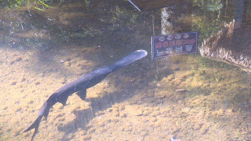 打卡点内,大小错落的水池清澈见底,各类鱼儿在水中自在游弋,构成一幅生机盎然的“水下画卷”。作为核心亮点的鲟龙鱼体型硕大,鳞片在阳光照射下泛着温润光泽,摆尾间尽显“水中寿星”的从容姿态;国家一级重点保护野生动物中华鲟、外形奇特的鸭嘴鱼以及有“水中大熊猫”之称的娃娃鱼在水中悠然巡游,独特模样引得游客纷纷驻足;色彩斑斓的金鱼则成群结队,红、橙、白、黑等各色身影交织,为水池增添了几分灵动活力。