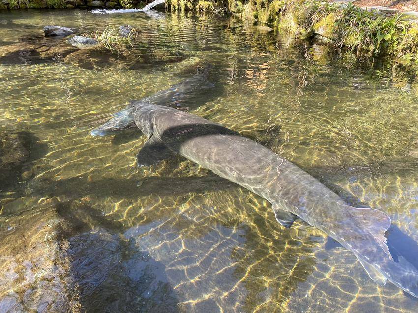 湖北日报客户端讯(通讯员房泽洋)春和景明的三月,坐落于木鱼镇官门山景区大鲵馆附近的“吉祥超大鲟龙鱼”网红打卡点,凭借丰富多样的鱼类品种与灵动有趣的观赏体验,成为游客必打卡的热门地标。