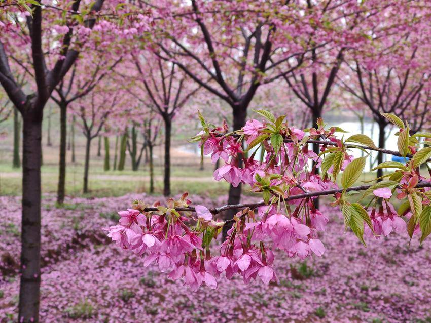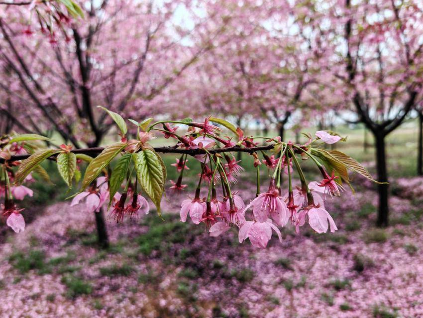 大方村睡虎山,300多亩苗木基地迎来了一年中最生机勃勃的时节。樱花如云霞般肆意绽放,玉兰花似雪盏般亭亭玉立,嫩绿的青草在林间地头肆意铺展。就在这如画的景致中,村民卢旺庆放养的3000多只朗德鹅成为了独特的“主角”。它们或在苗木间穿梭嬉戏,或在草地上埋头觅食,不仅为静谧的基地增添了灵动气息,更在不经意间实现了生态与经济的完美循环。