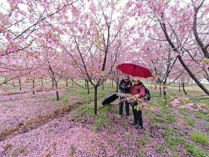 “每年都盼着樱花开,今年雨中的樱花更是别有一番风味。”来自孝感市区的一位游客撑着伞,在花树下拍照留念,“看着这满树繁花,听着鸟儿的歌声,所有的烦恼都烟消云散了。”